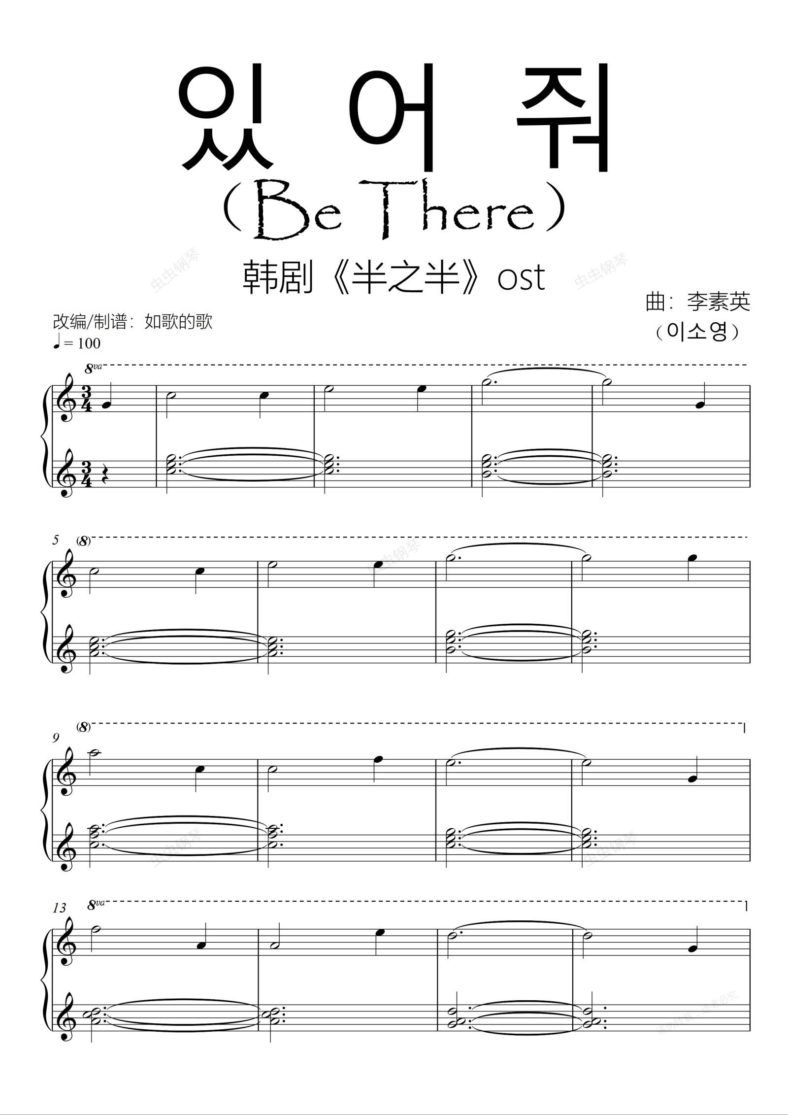 钢琴谱:있어줘Be There<半之半>C大调韩式疗愈ost