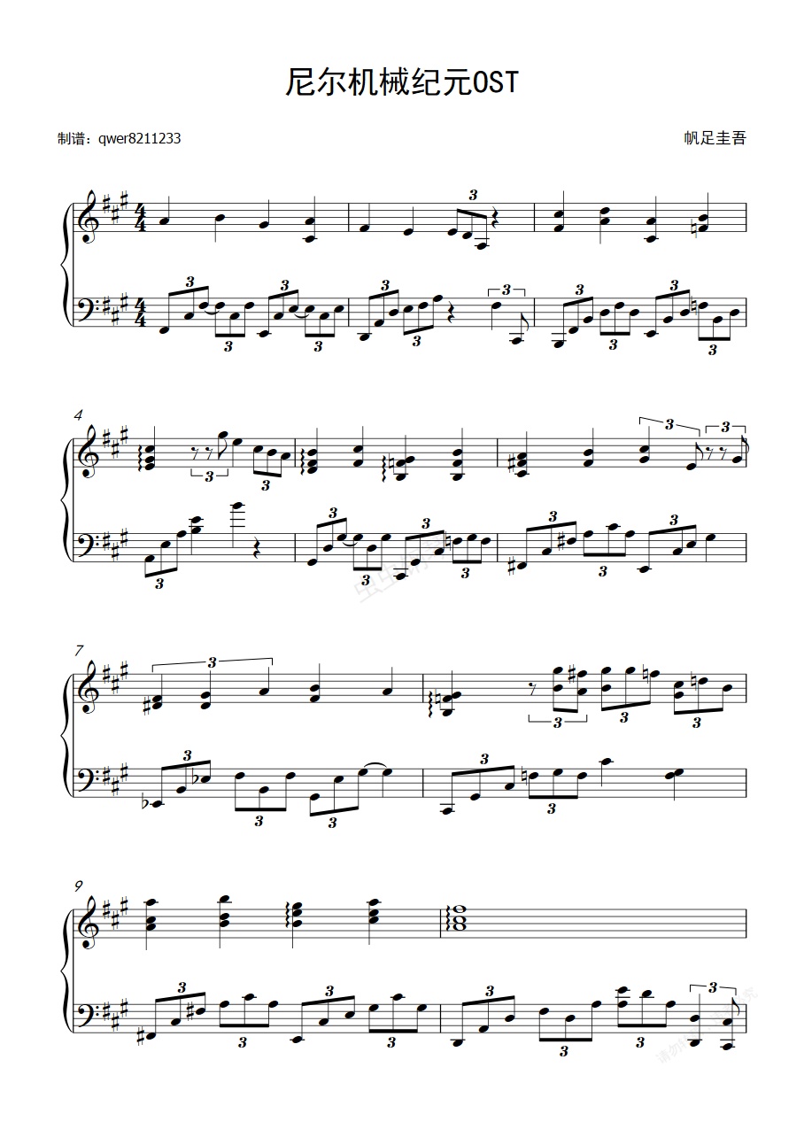 钢琴谱:MONACA - 曖昧ナ希望(尼尔机械纪元OST)