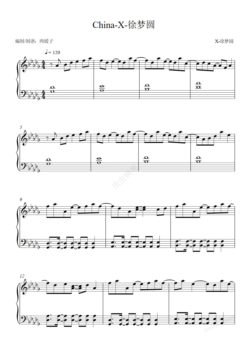 钢琴谱:【你一定听过的纯音乐】China-X-徐梦圆 原调