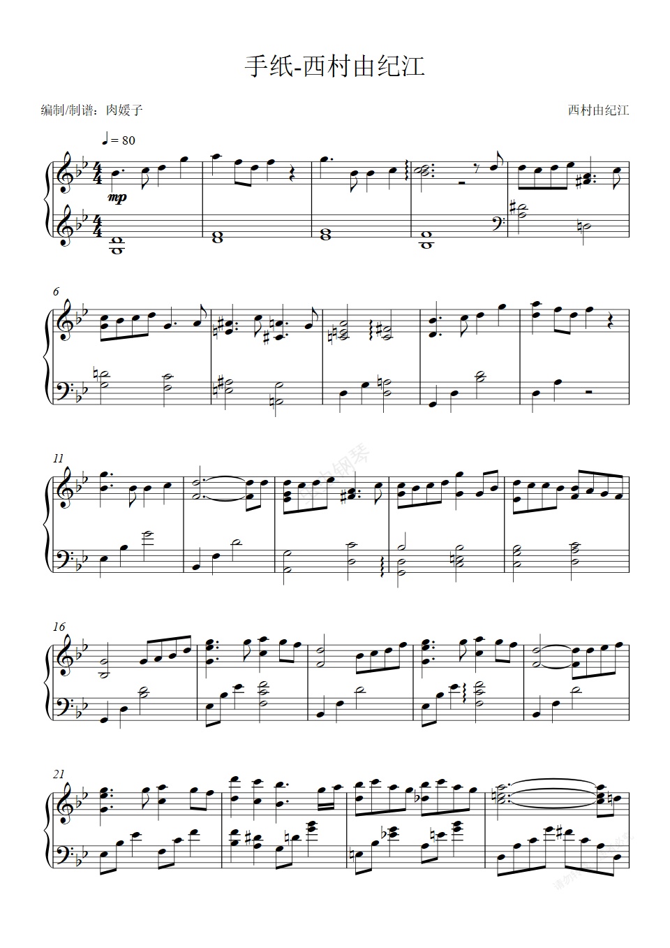 钢琴谱:《手纸》西村由纪江 一首听了就会感动的钢琴曲