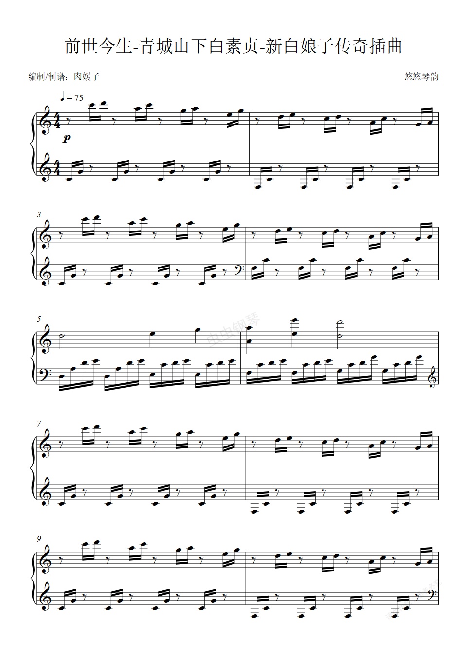 钢琴谱:前世今生-青城山下白素贞 【完美还原版】