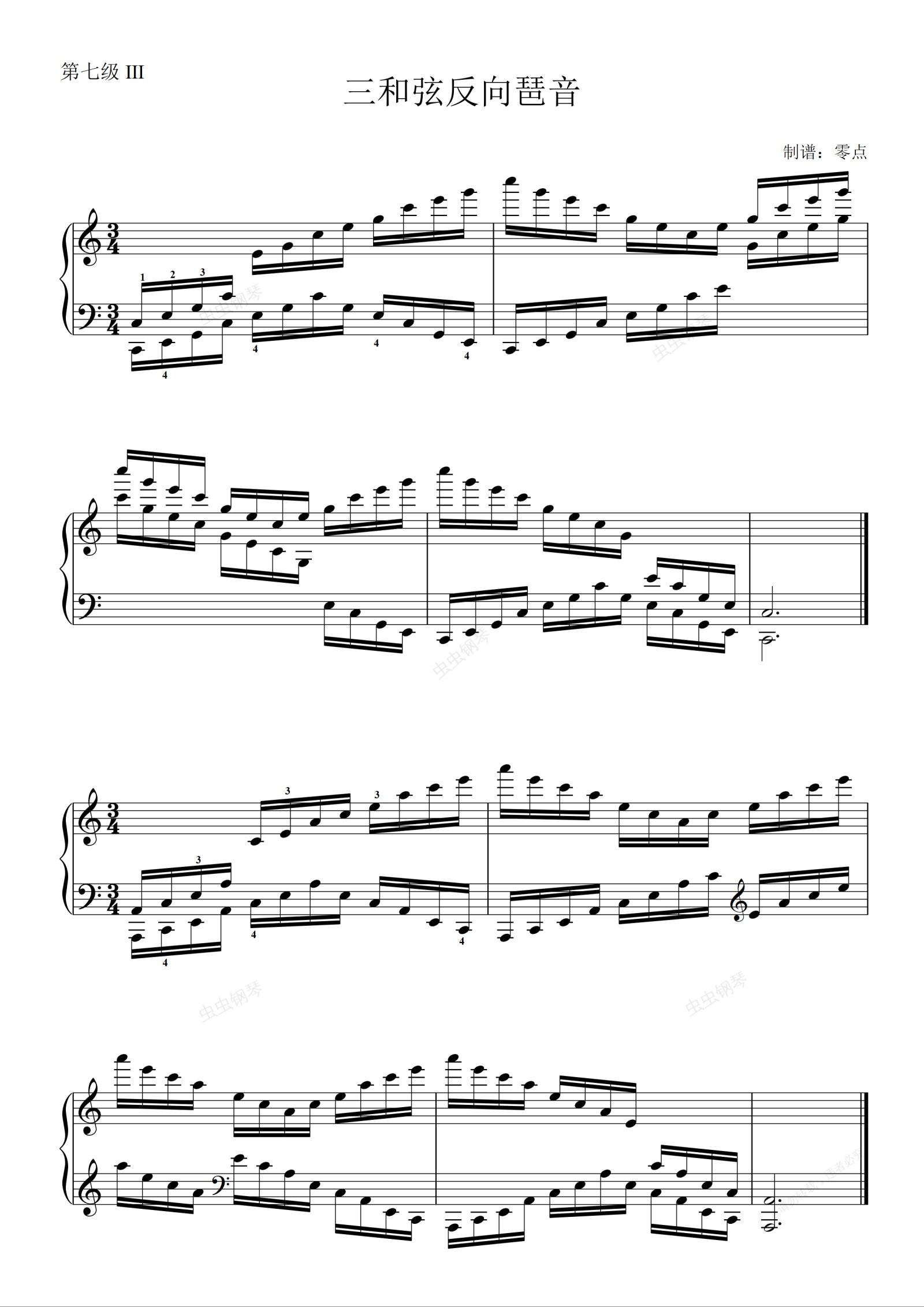 钢琴谱:第七级 三和弦反向琶音