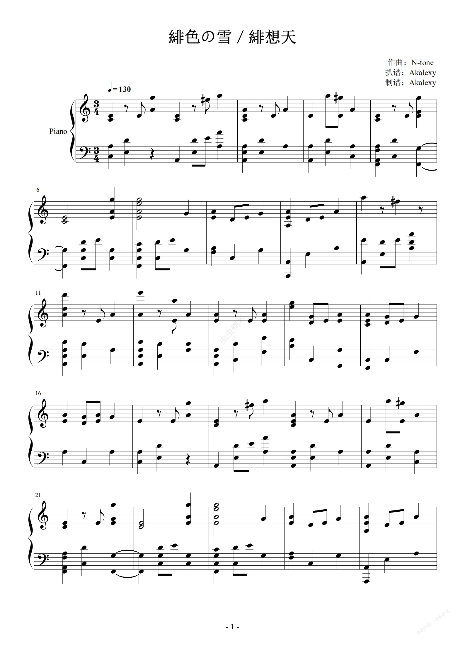 钢琴谱:东方绯想天《緋色の雪》