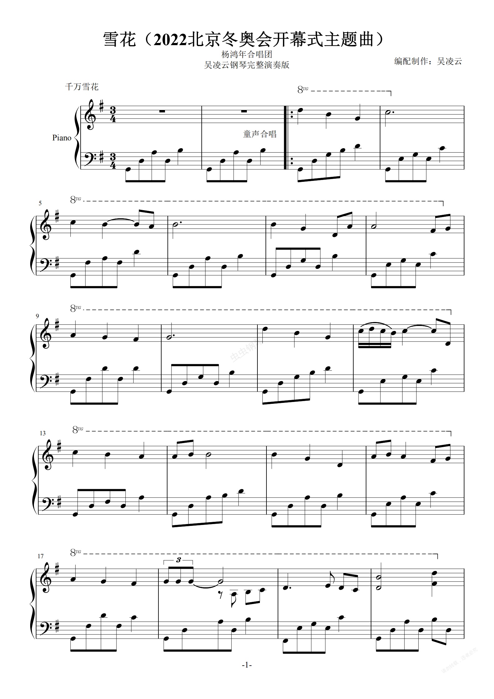 钢琴谱:雪花(2022北京冬奥会开幕式主题曲)杨鸿年合唱团 吴凌云钢琴完整演奏版