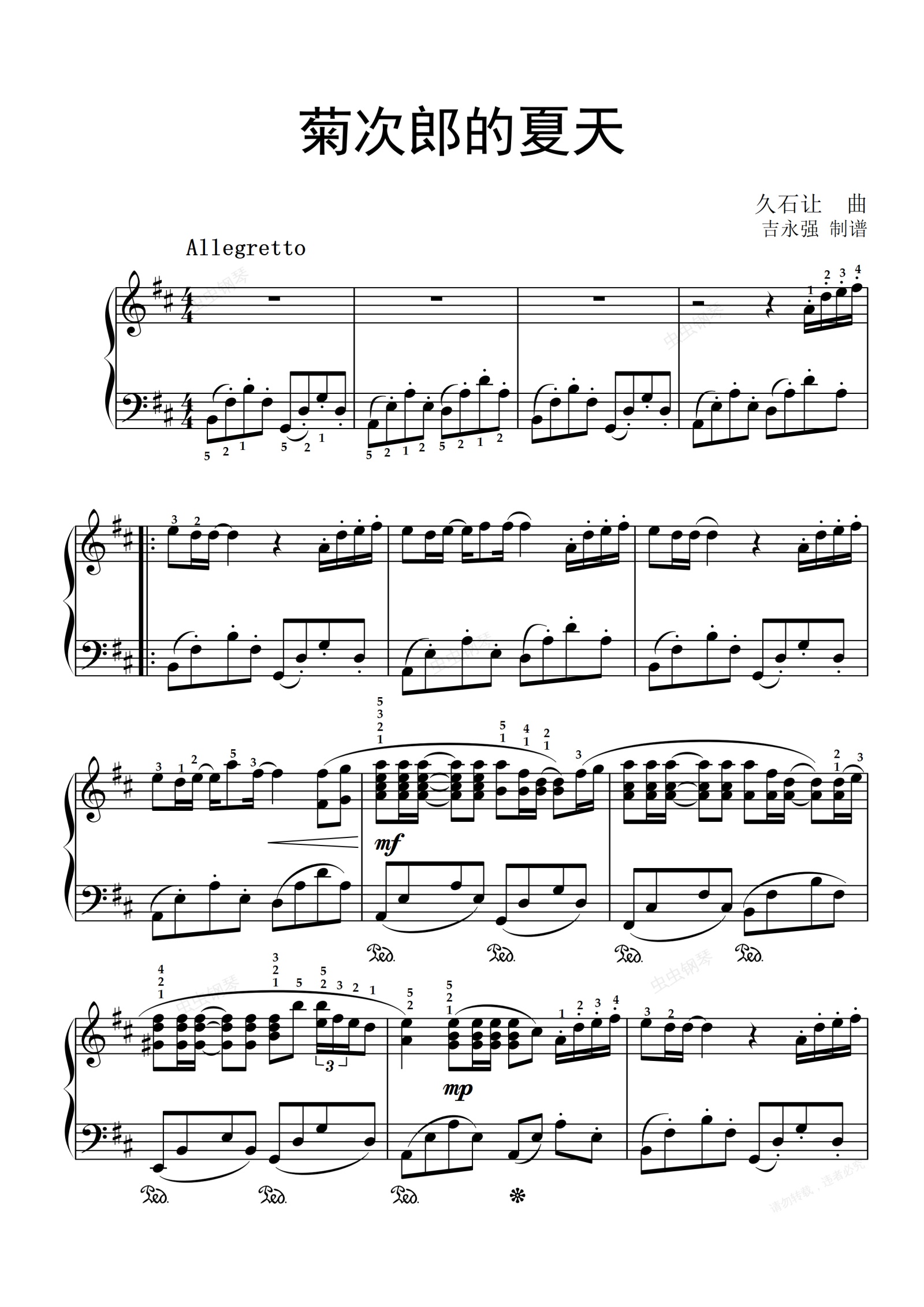 钢琴谱:菊次郎的夏天/Summer 规范教学版