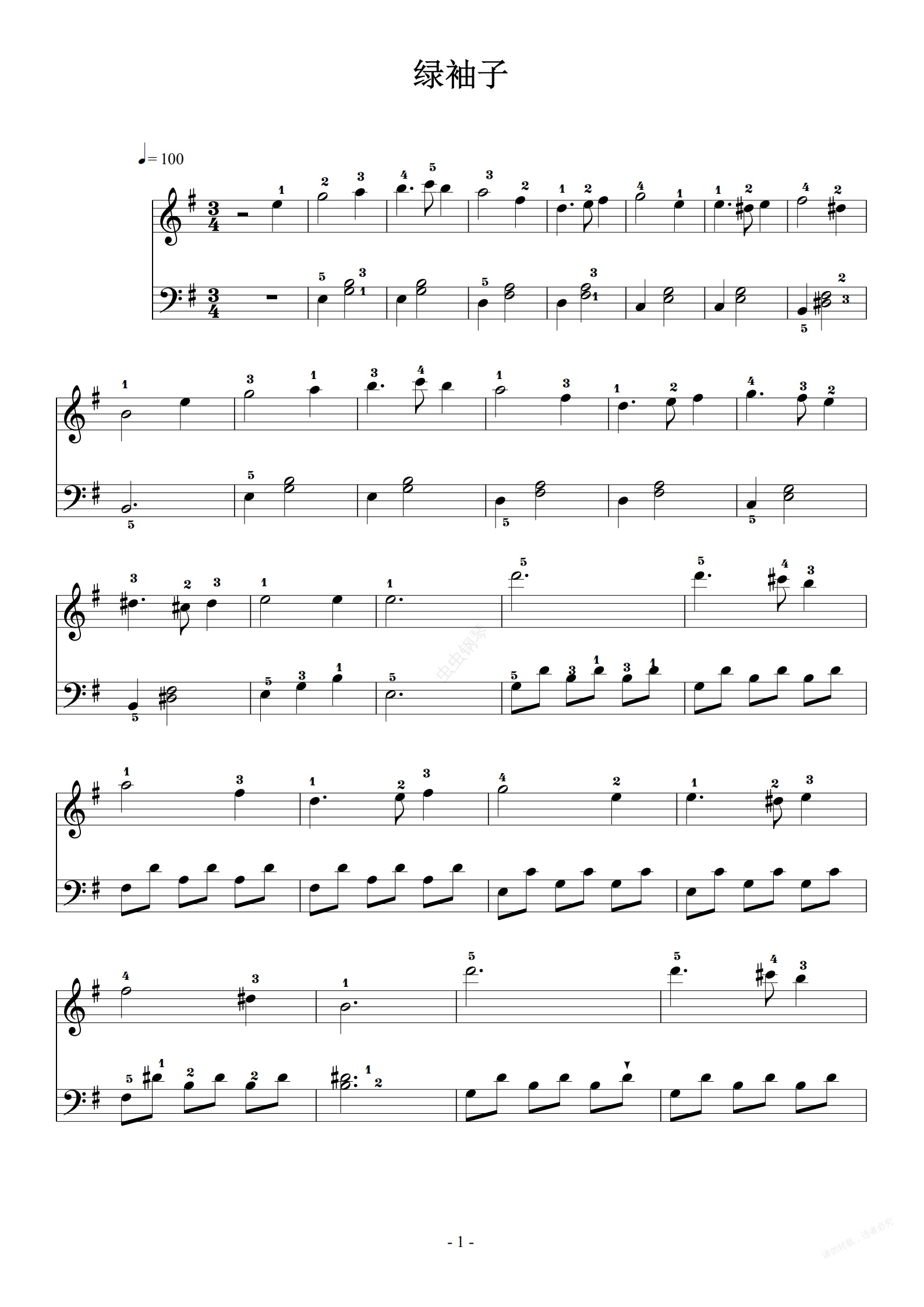 钢琴谱:绿袖子