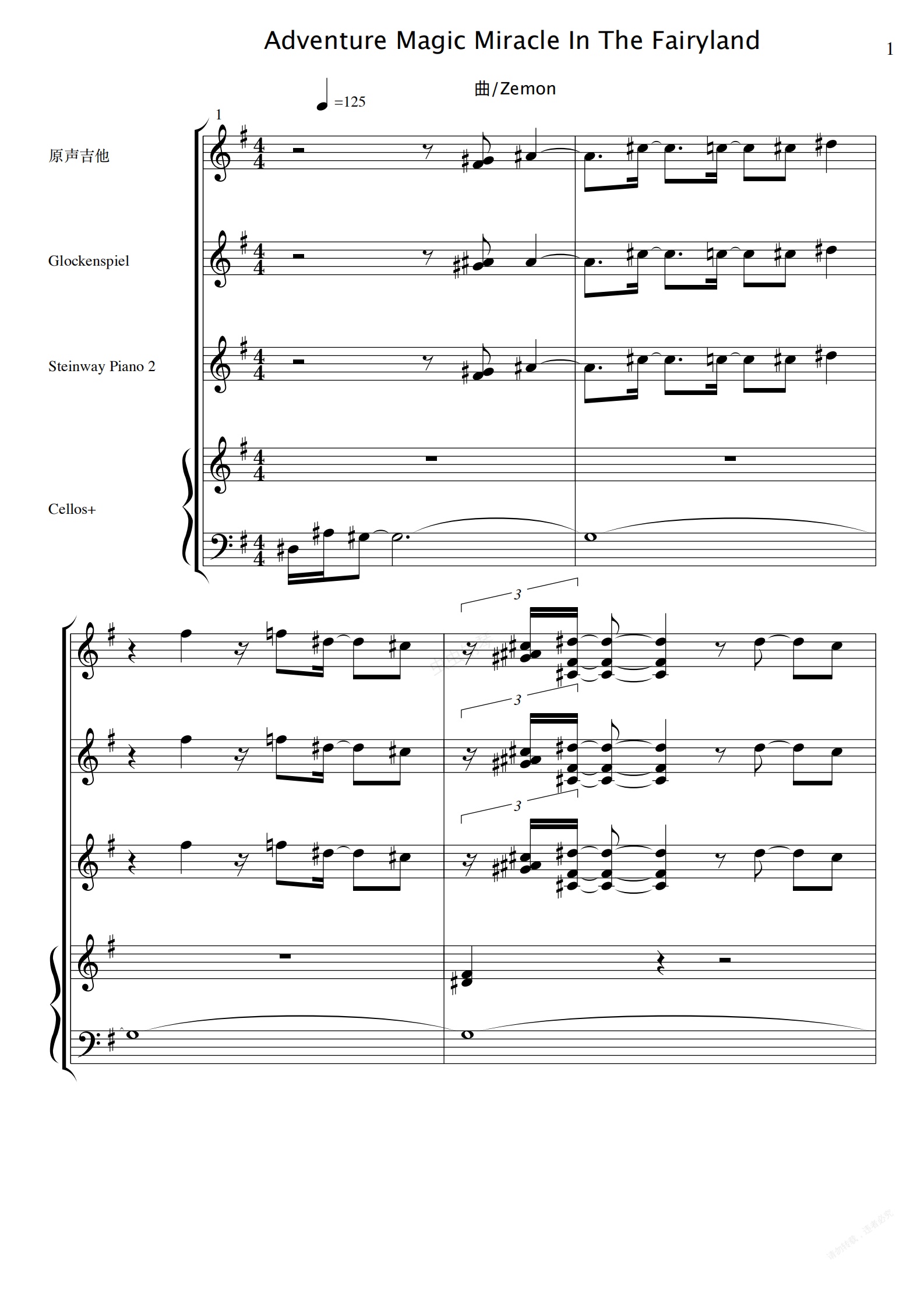 钢琴谱:Advanture magic Miracle in the fairyland G大调总谱