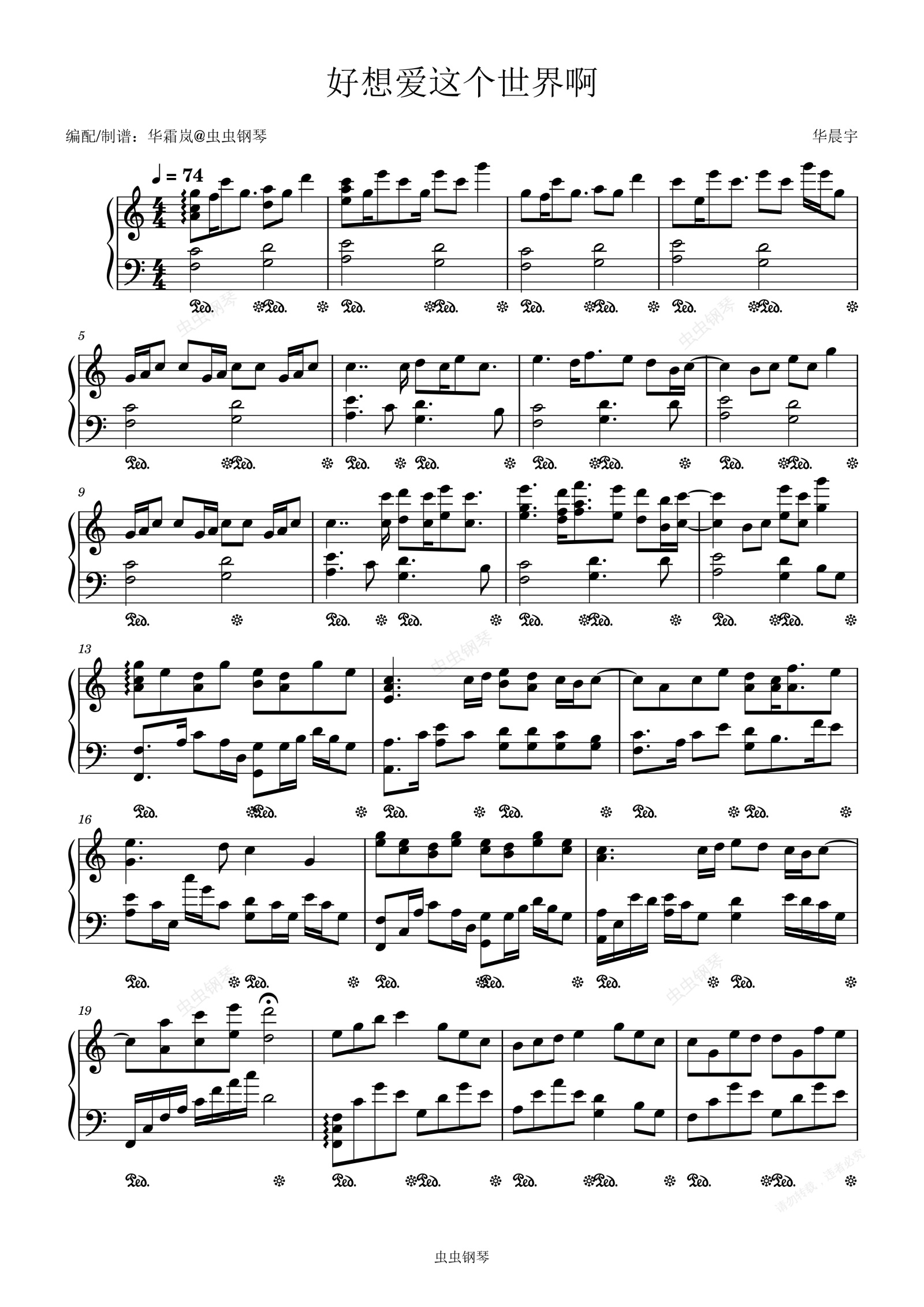 钢琴谱:好想爱这个世界啊