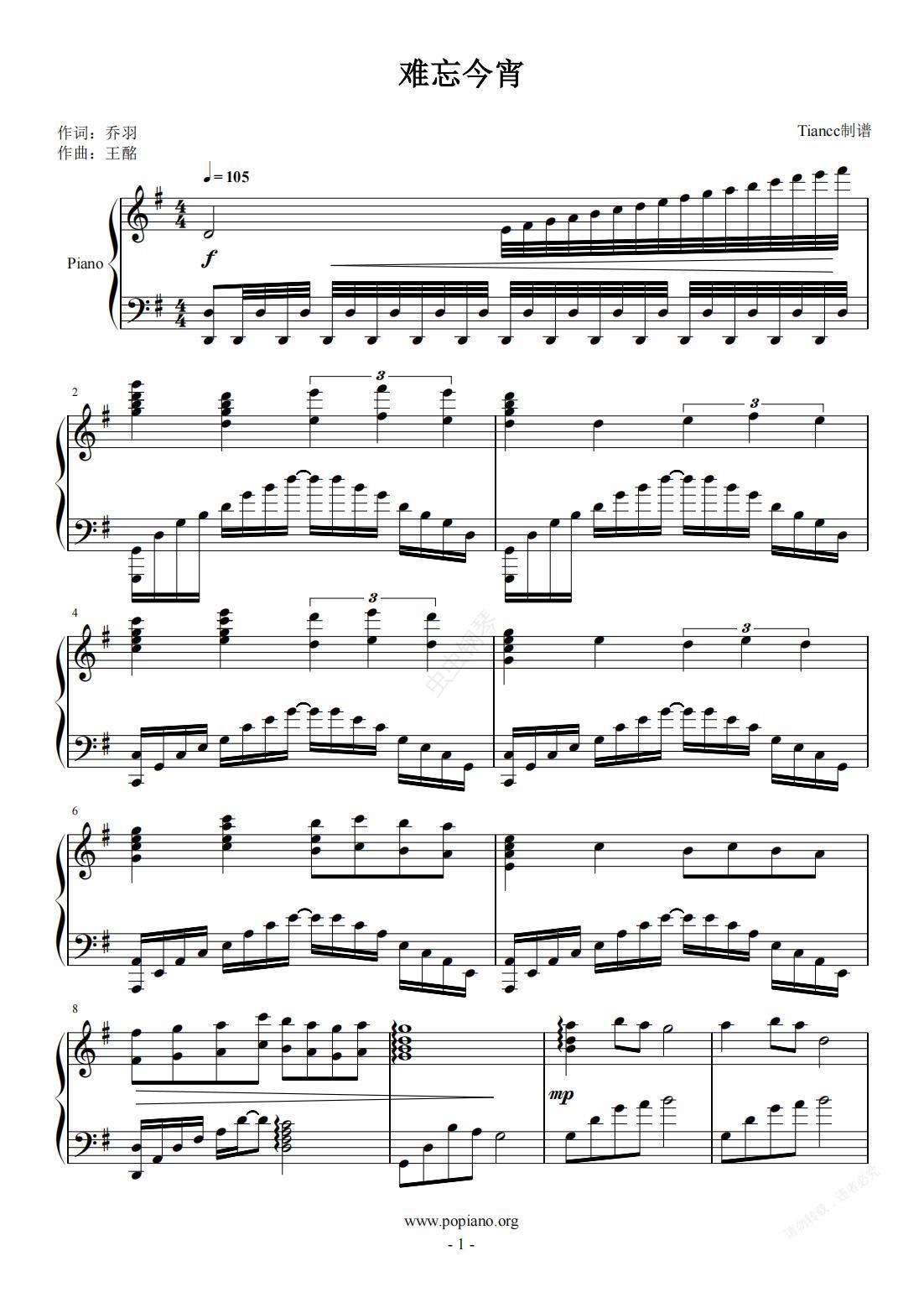 钢琴谱:《难忘今宵》春晚经典....299难度