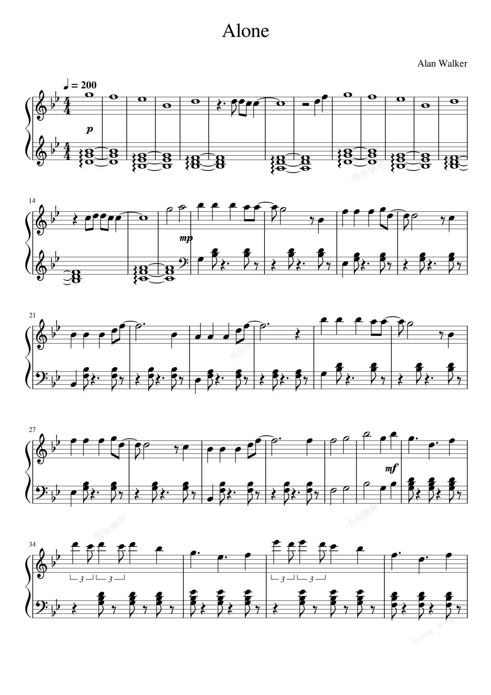 钢琴谱:Alone(Alan Walker)