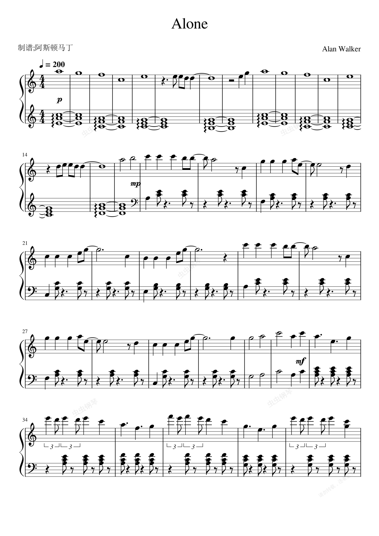 钢琴谱:Alone(Alan Walker)