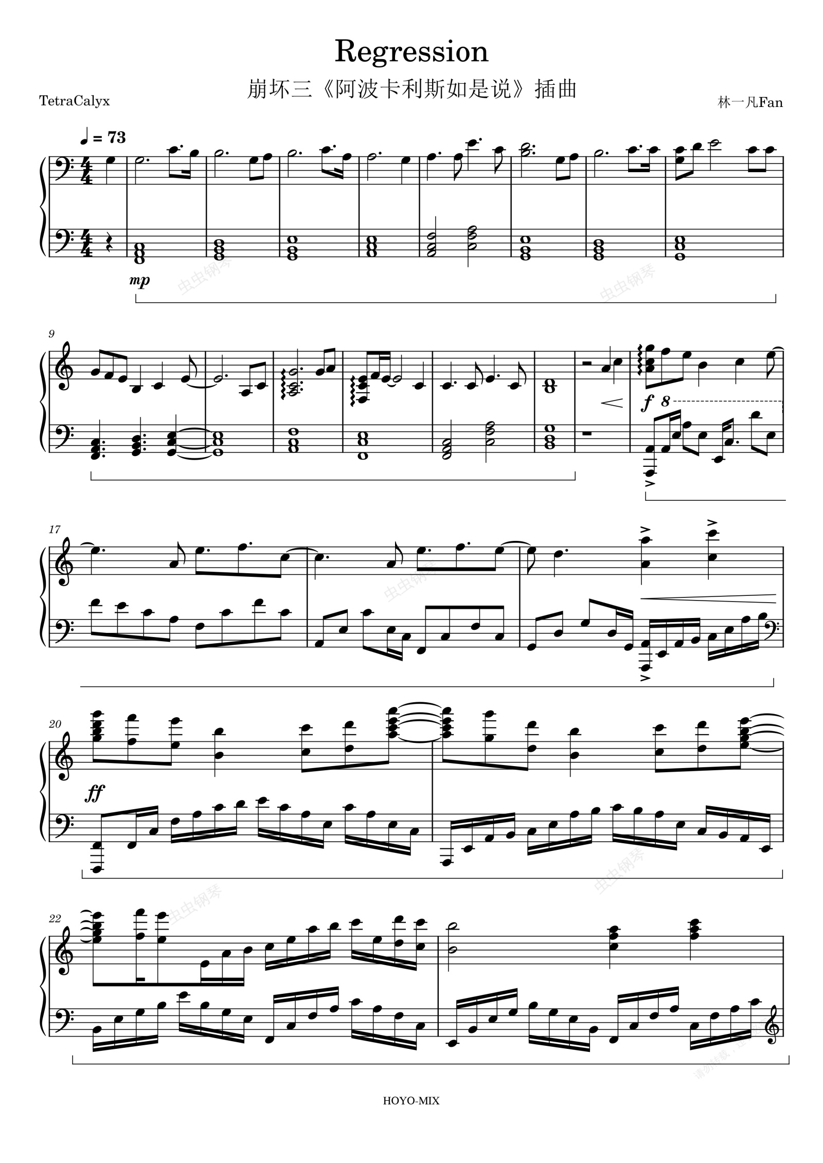 钢琴谱:Regression-阿云嘎 崩坏三《阿波卡利斯如是说》插曲