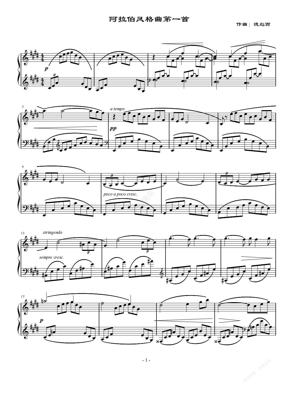 钢琴谱:阿拉伯风格曲第一首