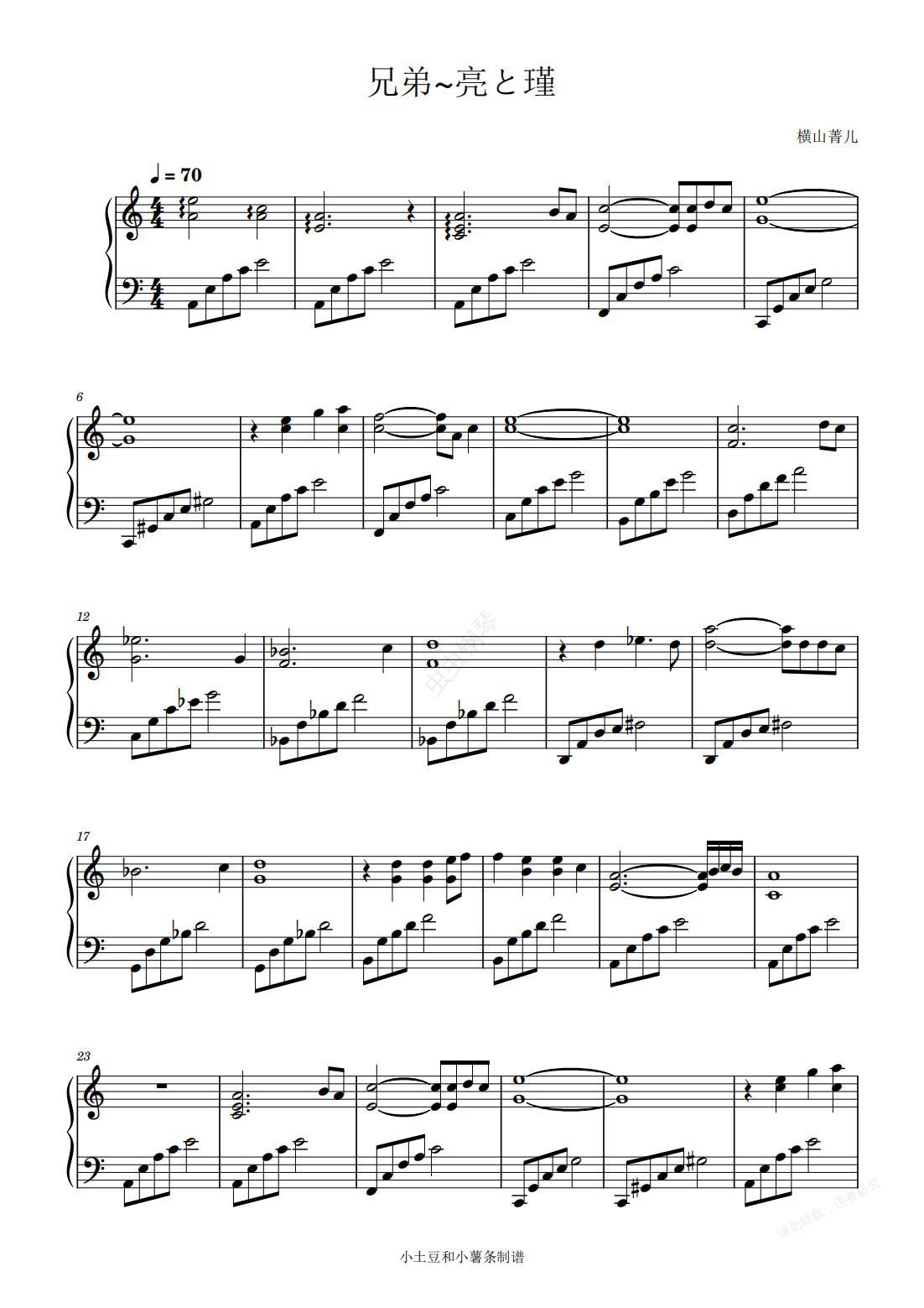 钢琴谱:兄弟~亮と瑾(95神雕侠侣经典BGM)