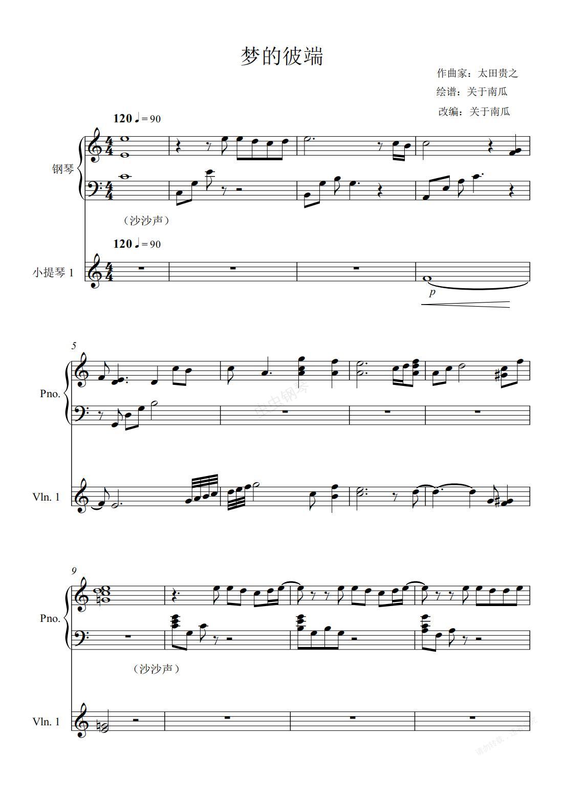 钢琴谱:【阴阳师五周年】梦的彼端(钢琴.小提琴)
