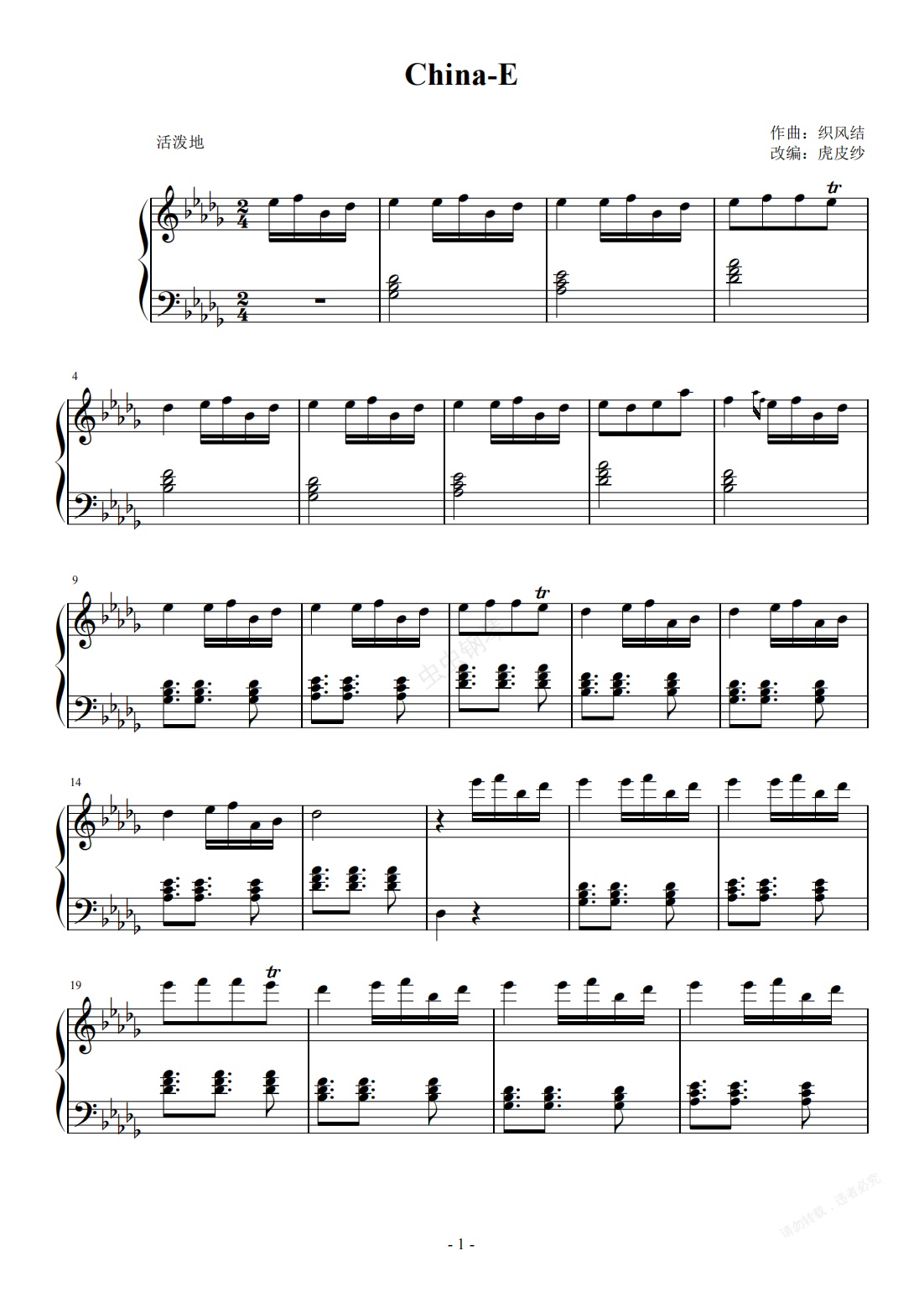 钢琴谱:China-E