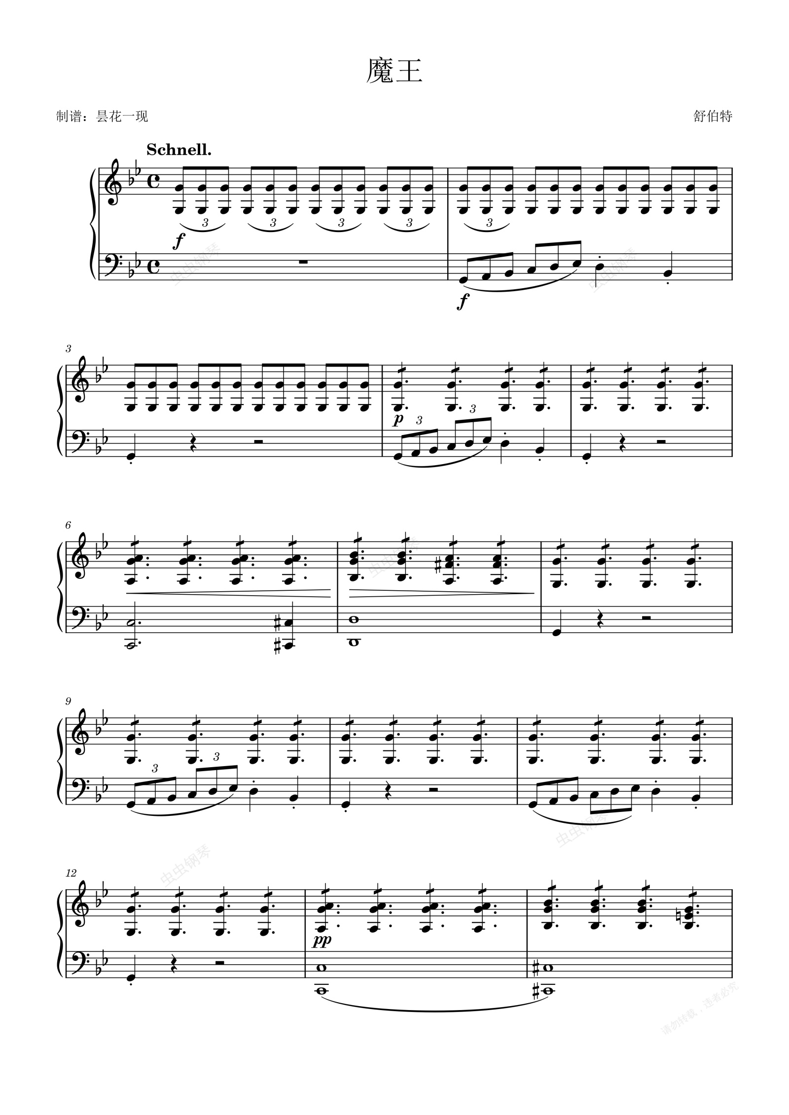 钢琴谱:魔王 舒伯特,钢琴独奏曲谱