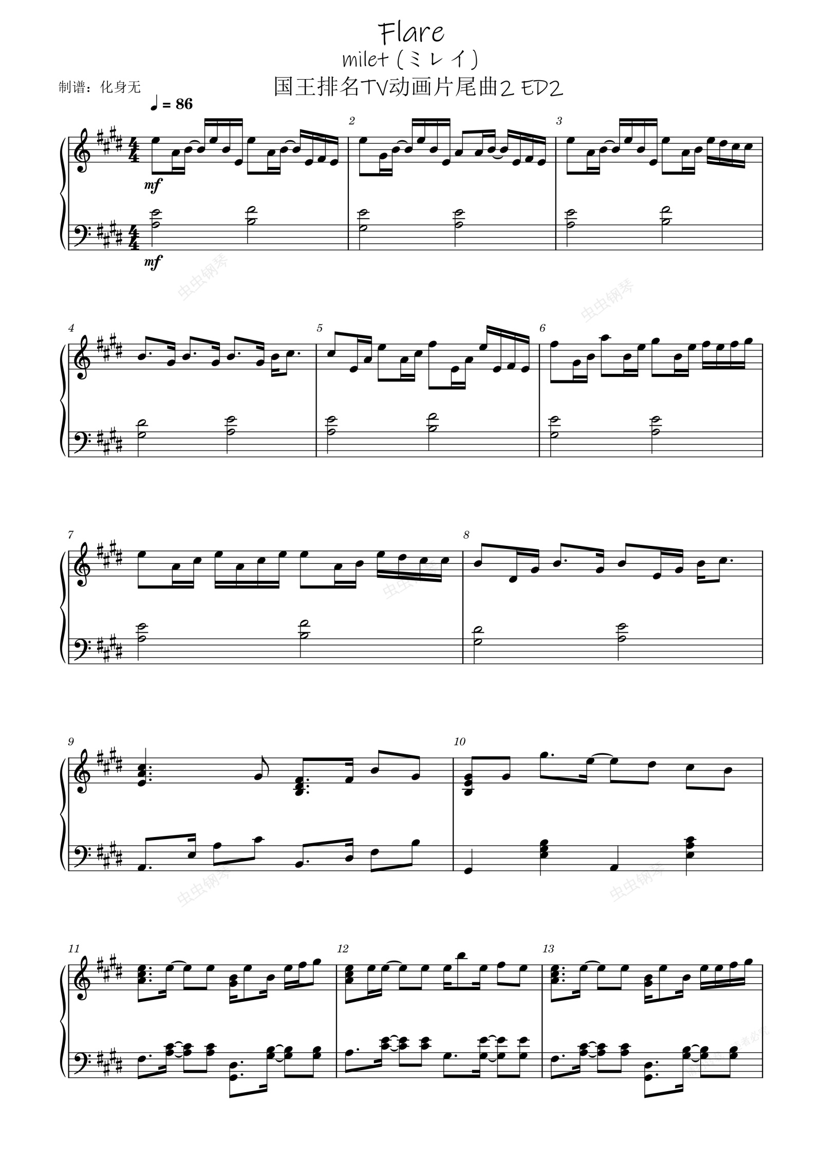 钢琴谱:国王排名动画片尾曲2 Flare milet (ミレイ)