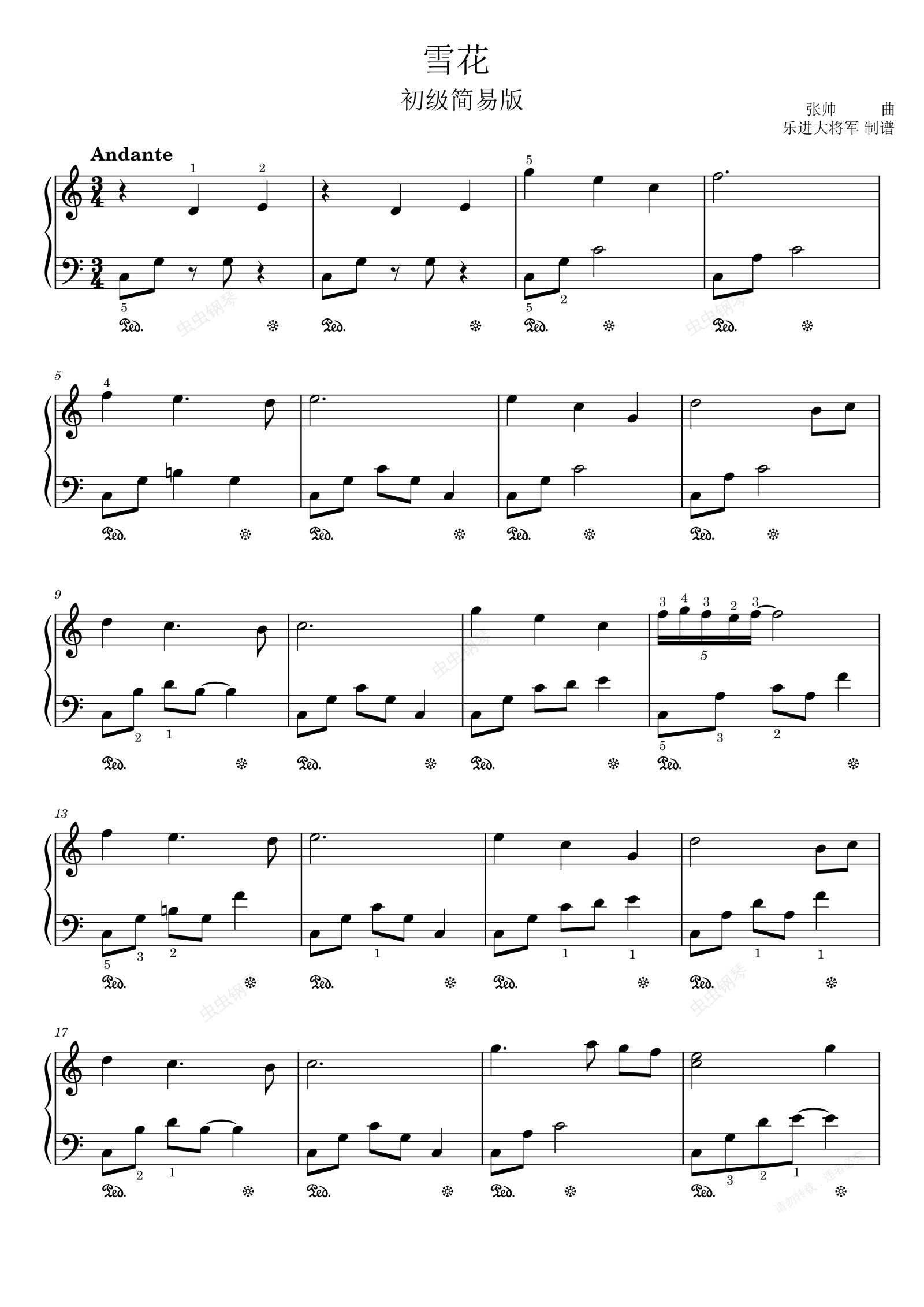钢琴谱:冬奥会主题曲《雪花》C调简易版 拜厄基础