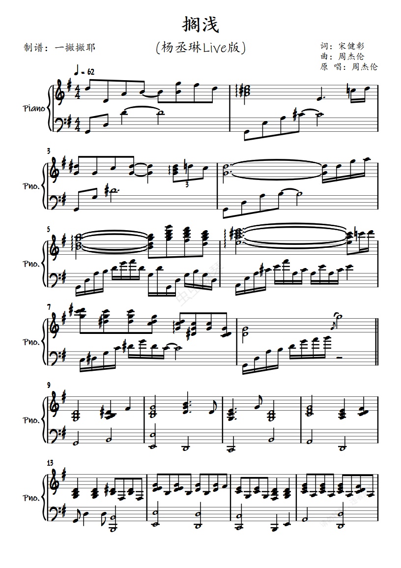 钢琴谱:搁浅【杨丞琳版弹唱谱】 周杰伦「一撇撇耶」