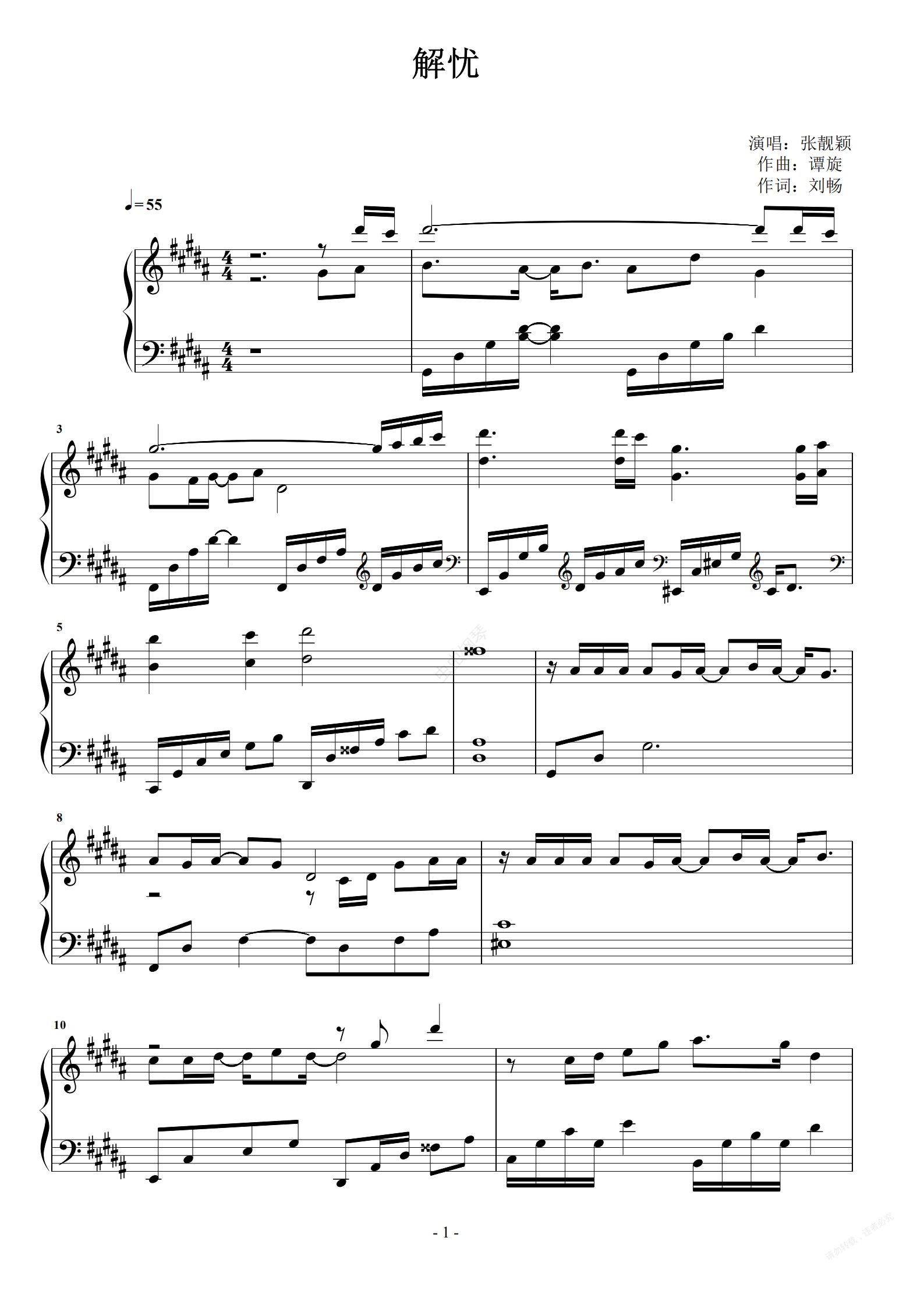 钢琴谱:解忧