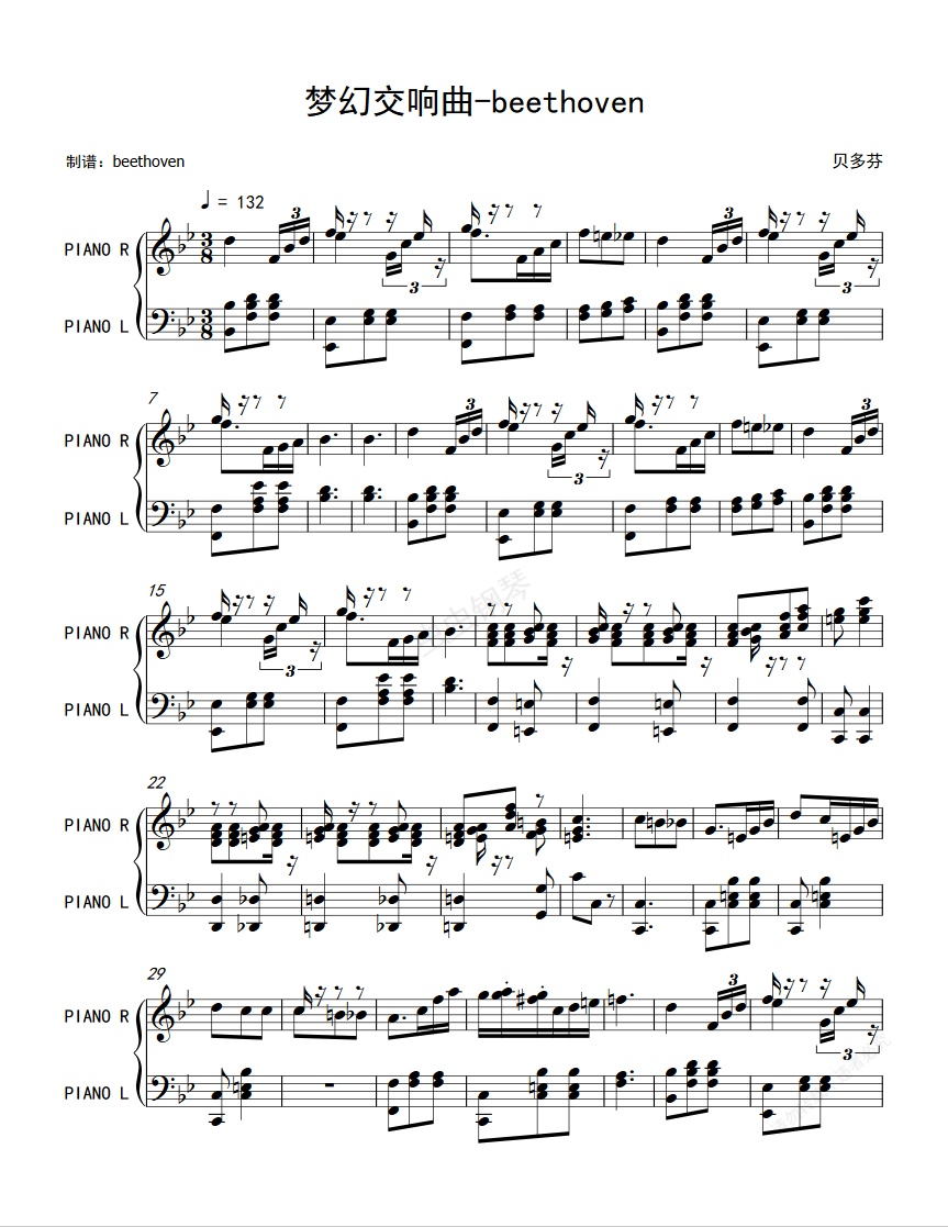 钢琴谱:梦幻交响曲-钢琴版-贝多芬