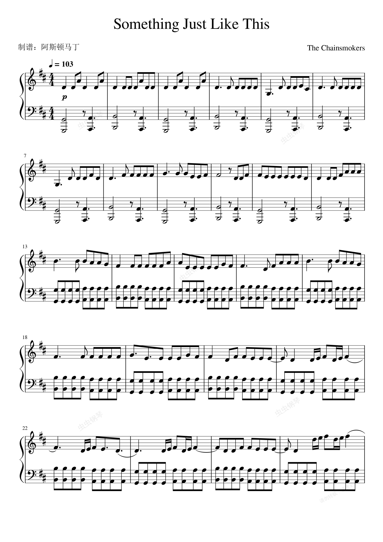 钢琴谱:Something Just Like This(The Chainsmokers