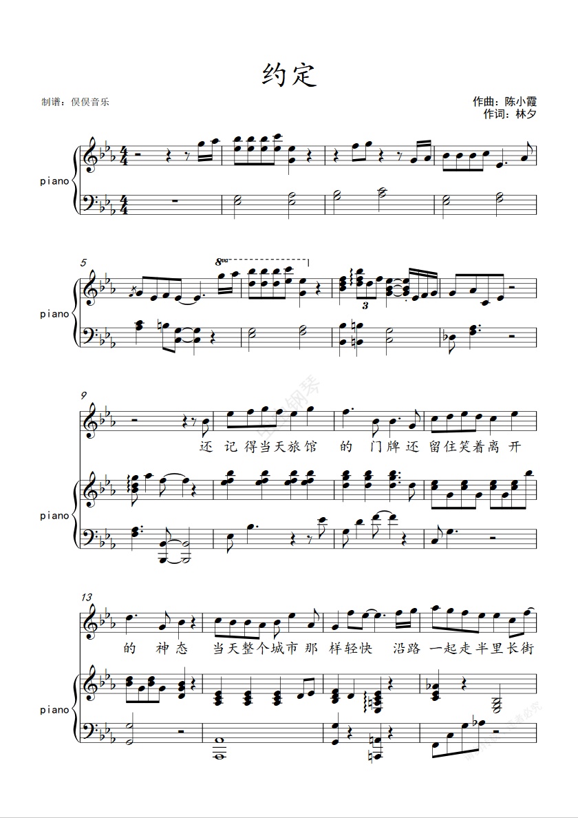 钢琴谱:容祖儿《约定》原版伴奏谱