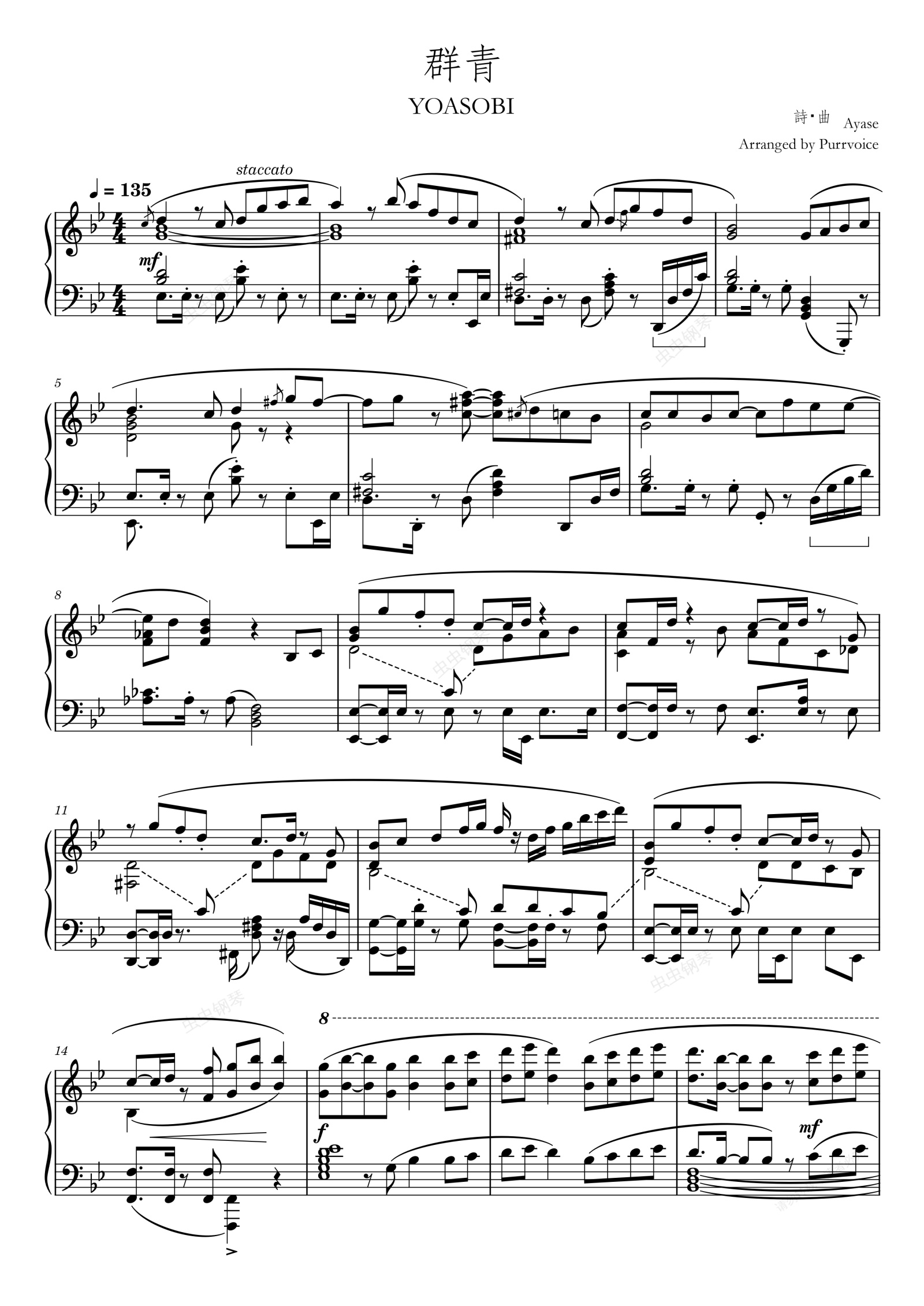 钢琴谱:【Purrvoice热狗】群青-YOASOBI 全网最高难度钢琴改编