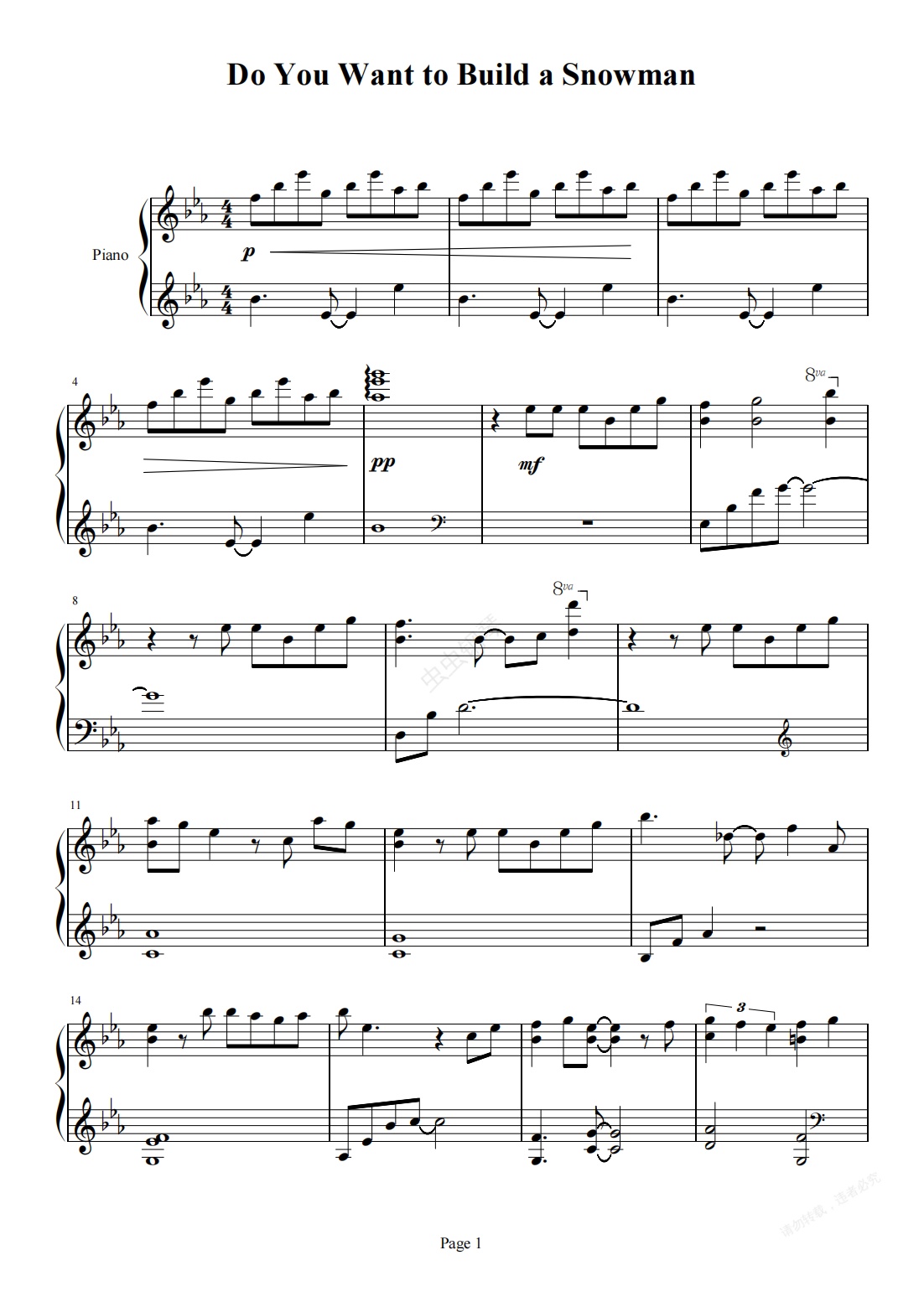 钢琴谱:Do You Want to Build a Snowman冰雪奇缘(Frozen)你想不想堆雪人