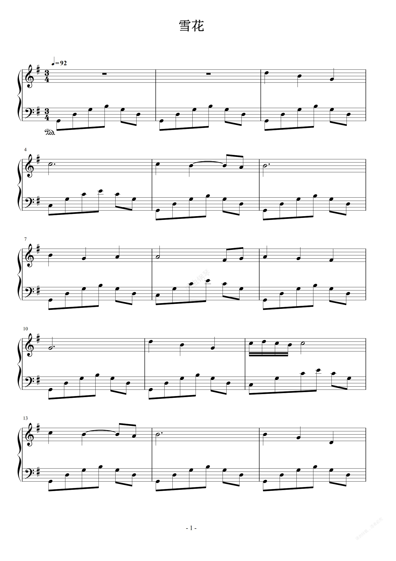 钢琴谱:北京冬奥会主题曲 雪花 简易版