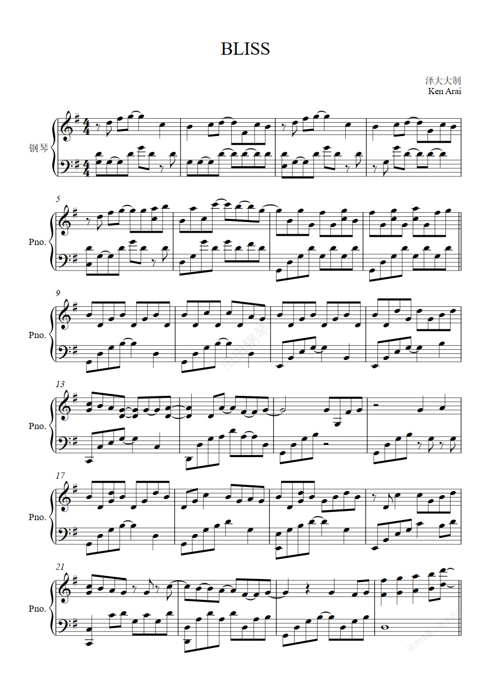 钢琴谱:BLISS【完美独奏版】泽大大 寄生兽