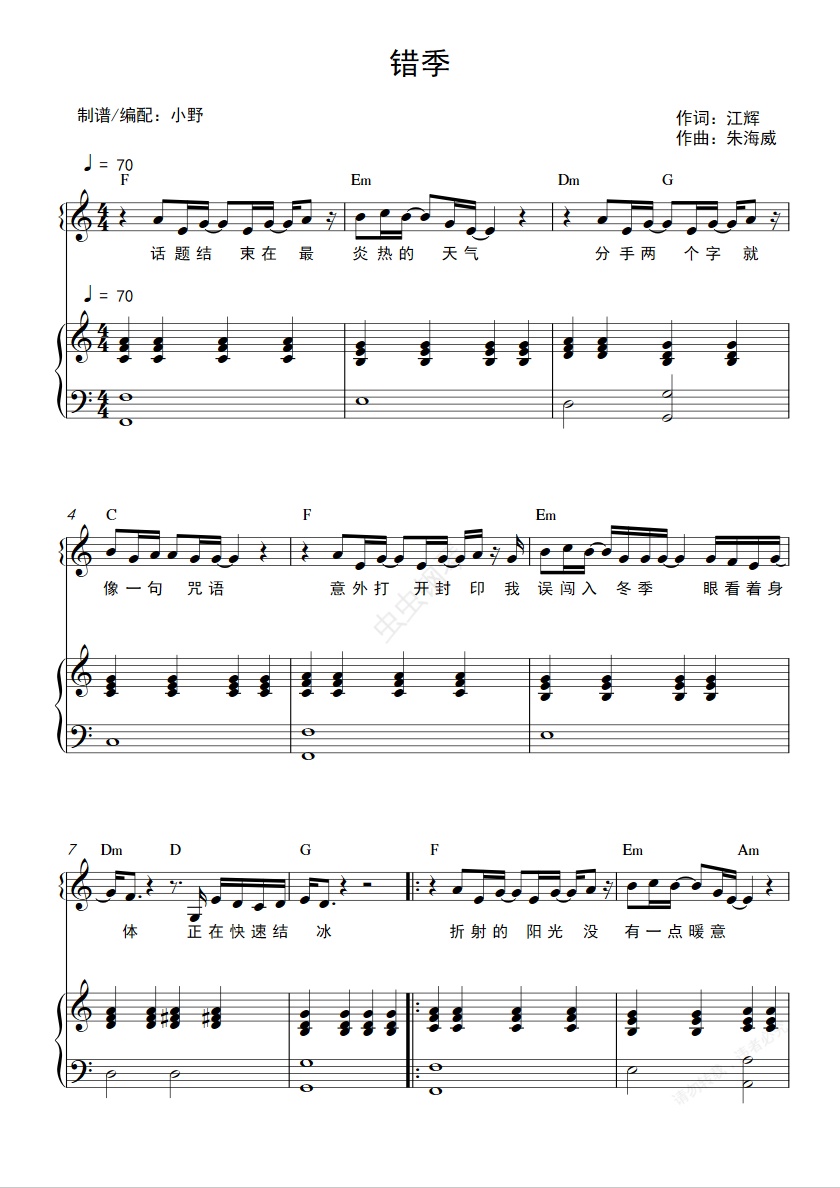 钢琴谱:错季(和弦弹唱版)