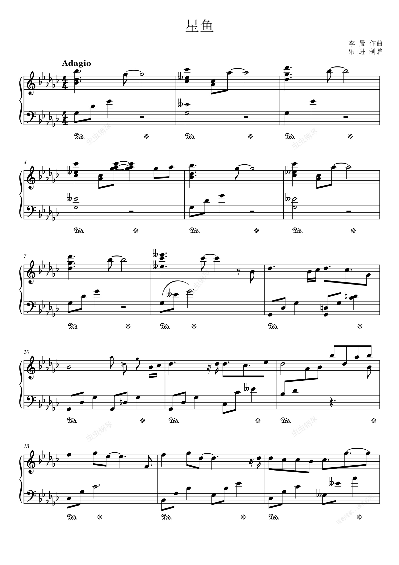 钢琴谱:周深演唱《星鱼》,原调深情版