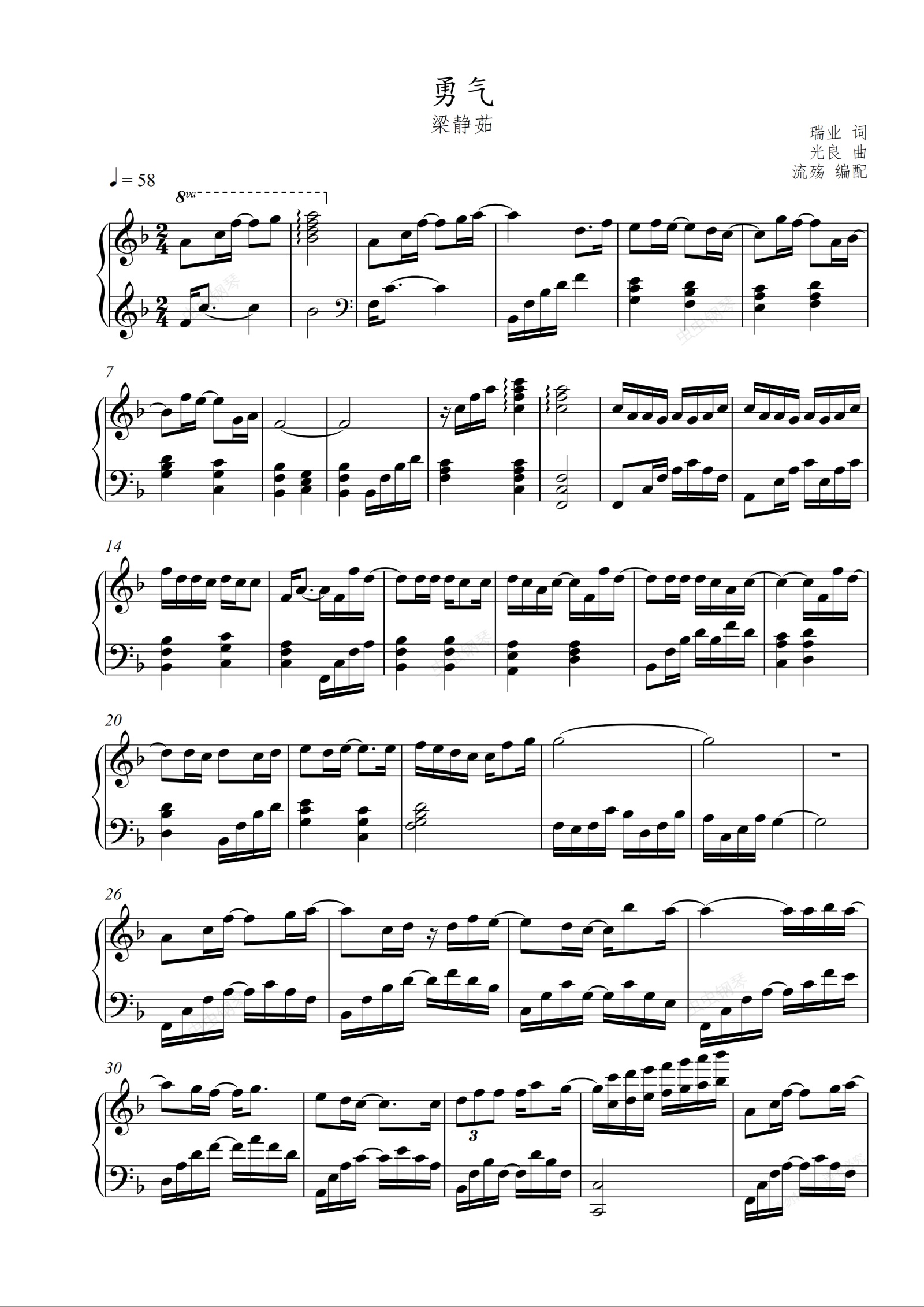 钢琴谱:勇气
