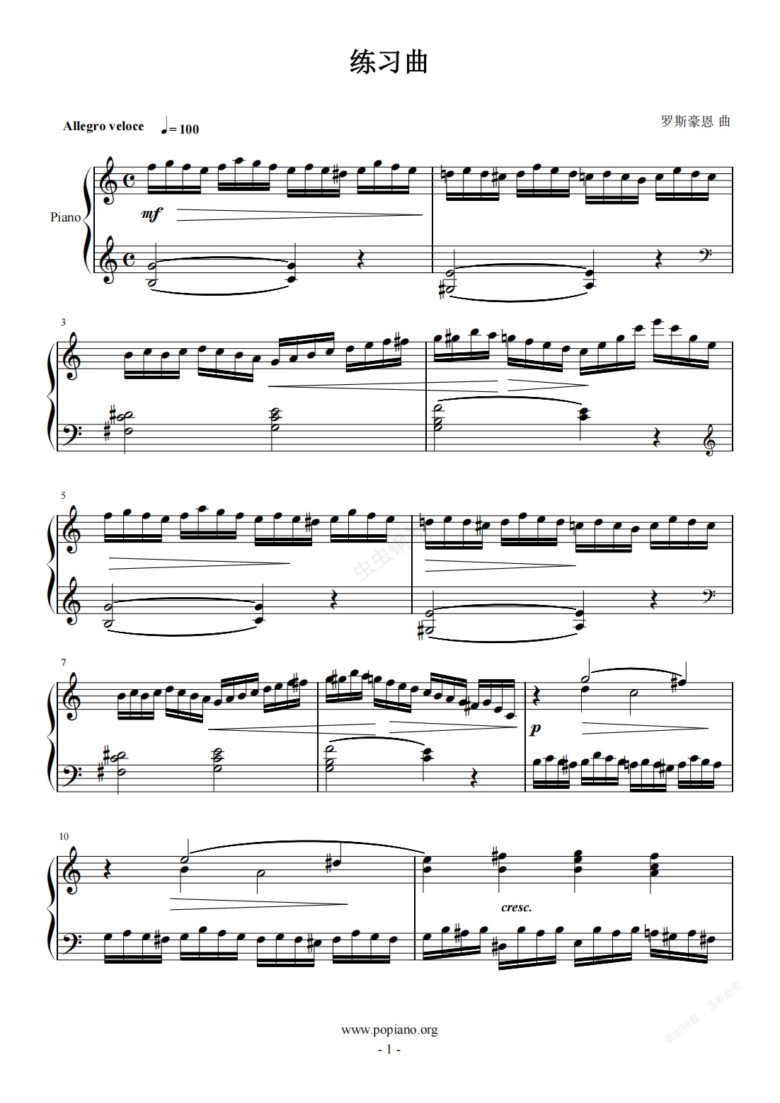钢琴谱:《练习曲(罗恩豪斯)》川音五级