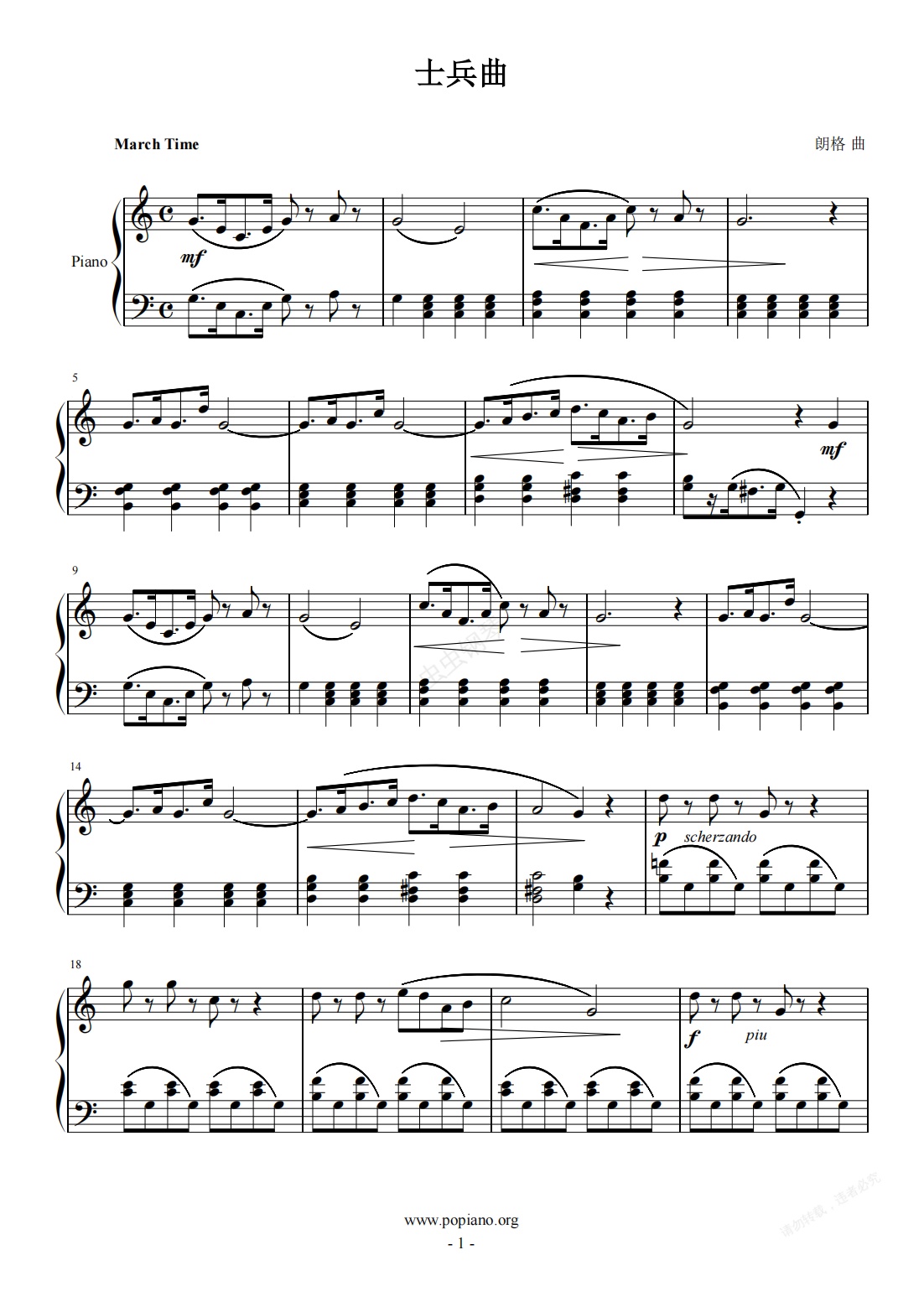 钢琴谱:《士兵曲》川音五级