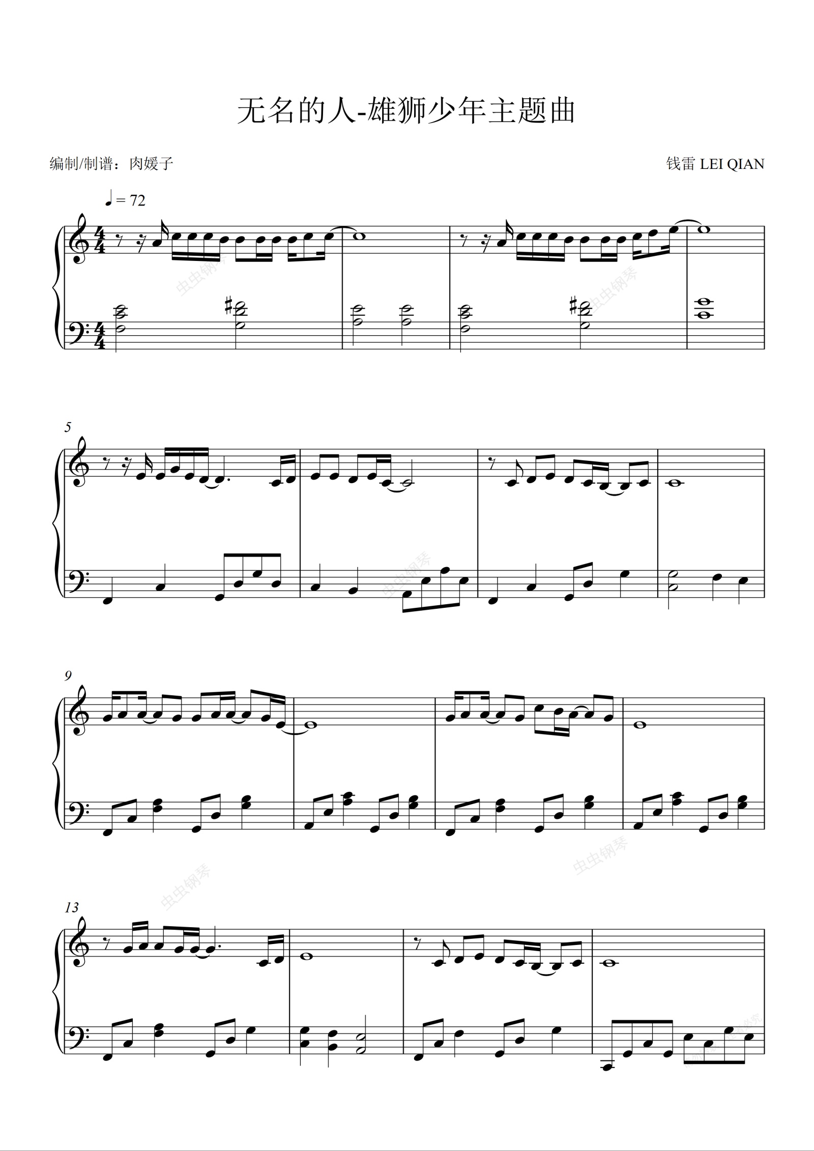 钢琴谱:无名的人-雄狮少年主题曲 【好听简单版】