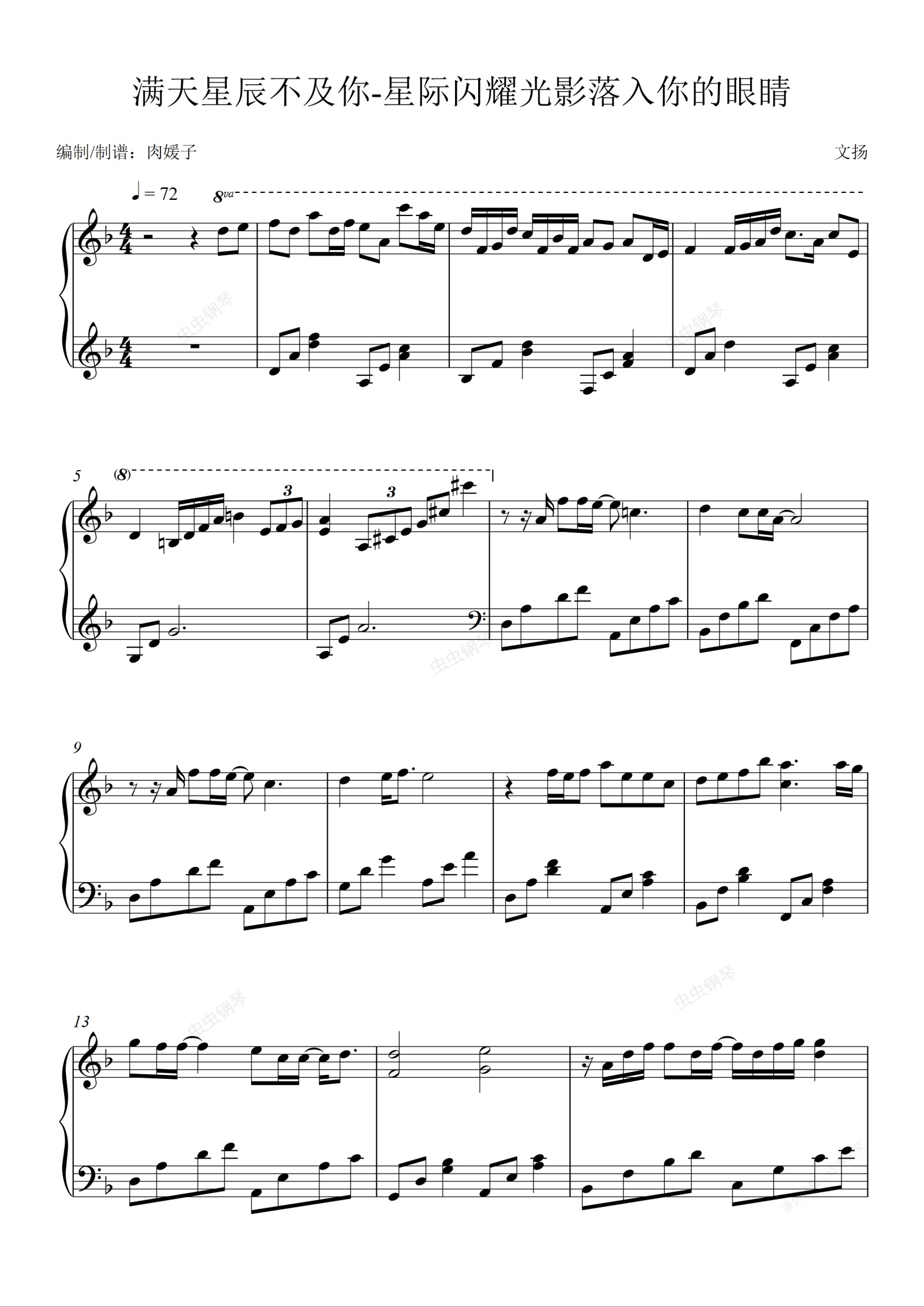 钢琴谱:满天星辰不及你- 简单完整版 【超治愈纯音乐】