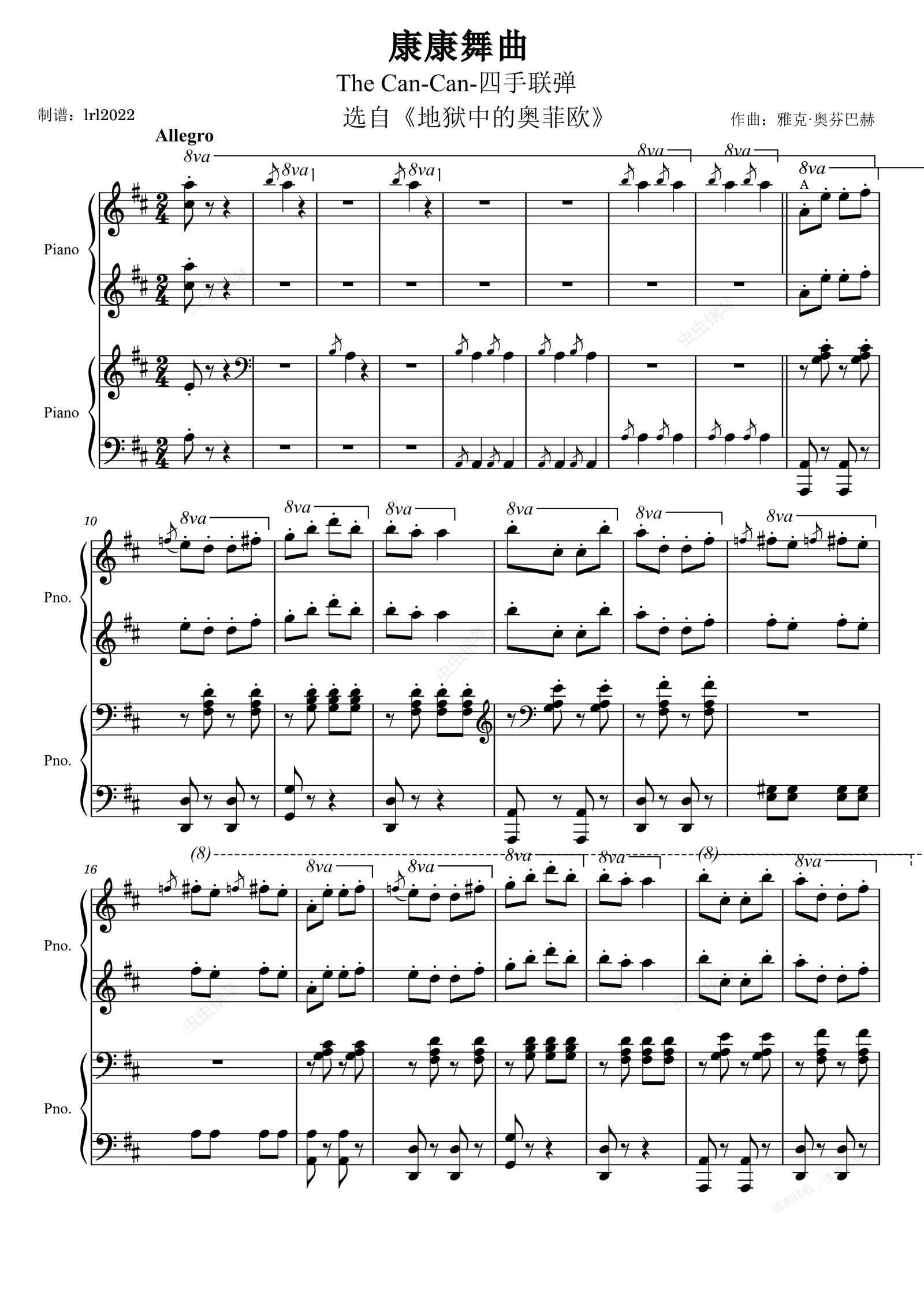 钢琴谱:康康舞曲-四手联弹-钢琴谱-The can can-奥芬巴赫-《地狱中的奥菲欧》序曲