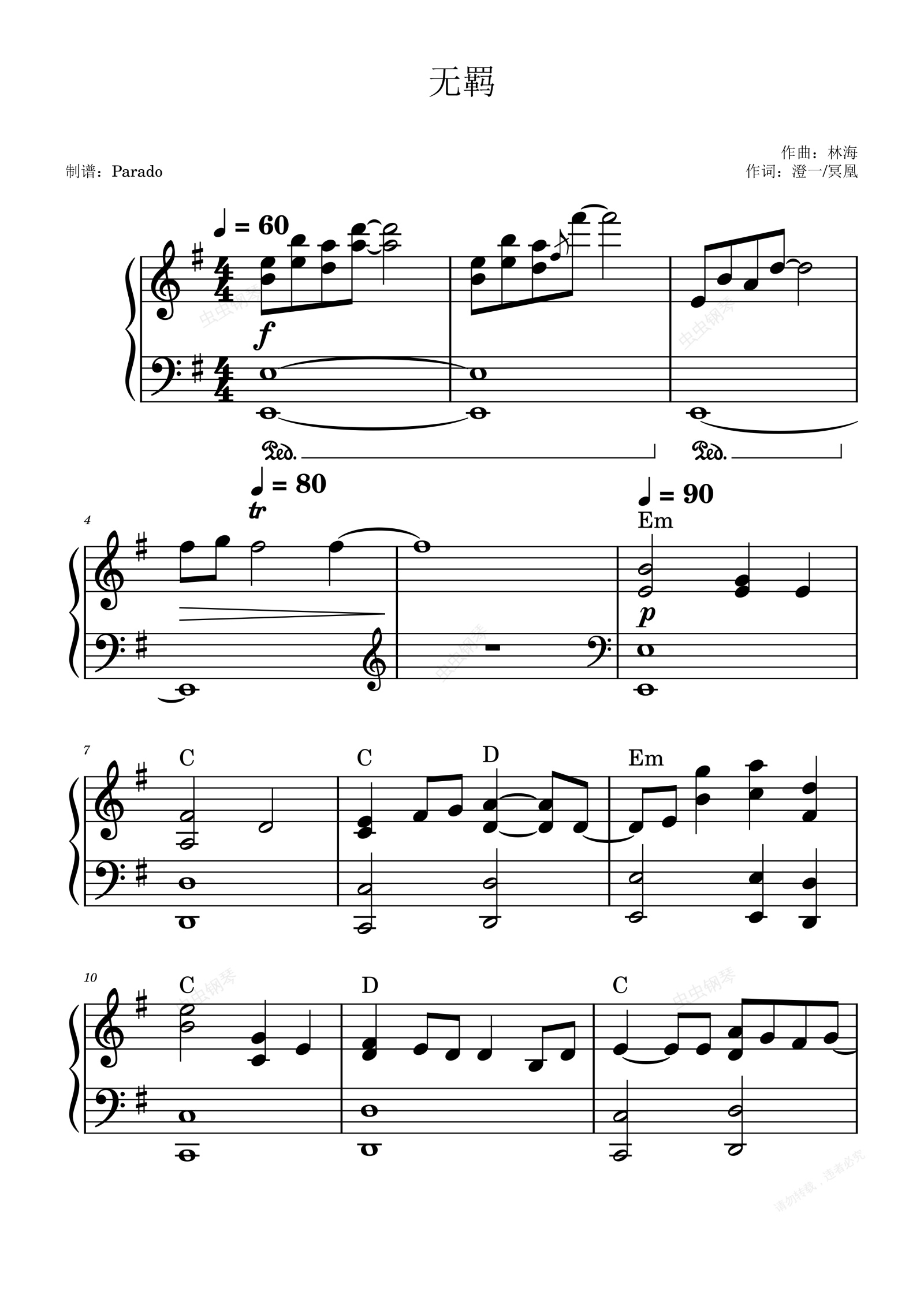 钢琴谱:无羁-肖战/王一博-《陈情令》主题曲-抖音热曲-好弹又好听