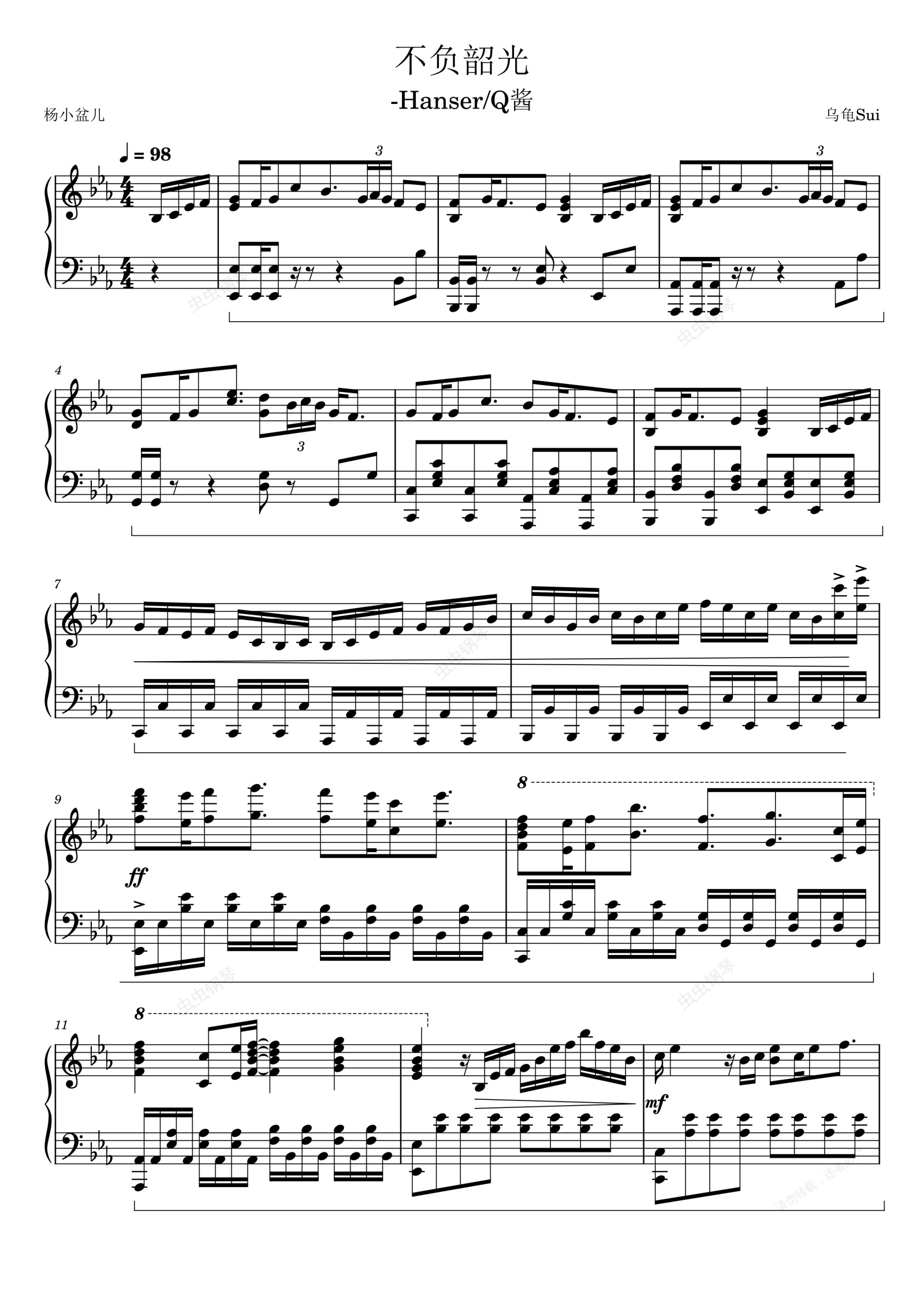 钢琴谱:不负韶光-Hanser&Q酱 高还原版