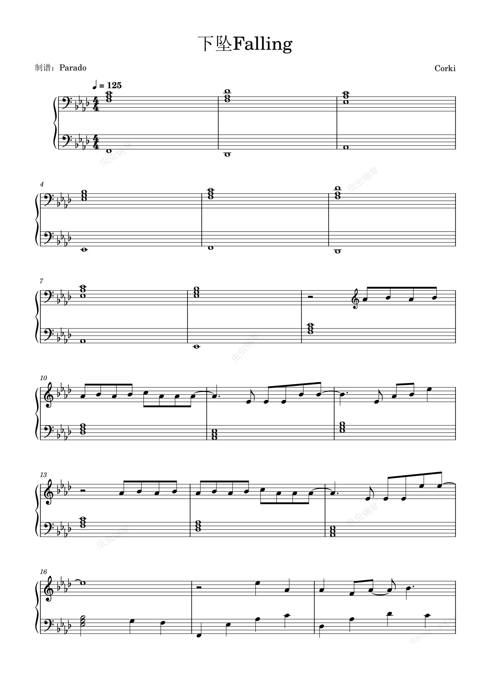 钢琴谱:下坠Falling-Corki-对你卑微也只是一种习惯-抖音热曲-好听又好弹