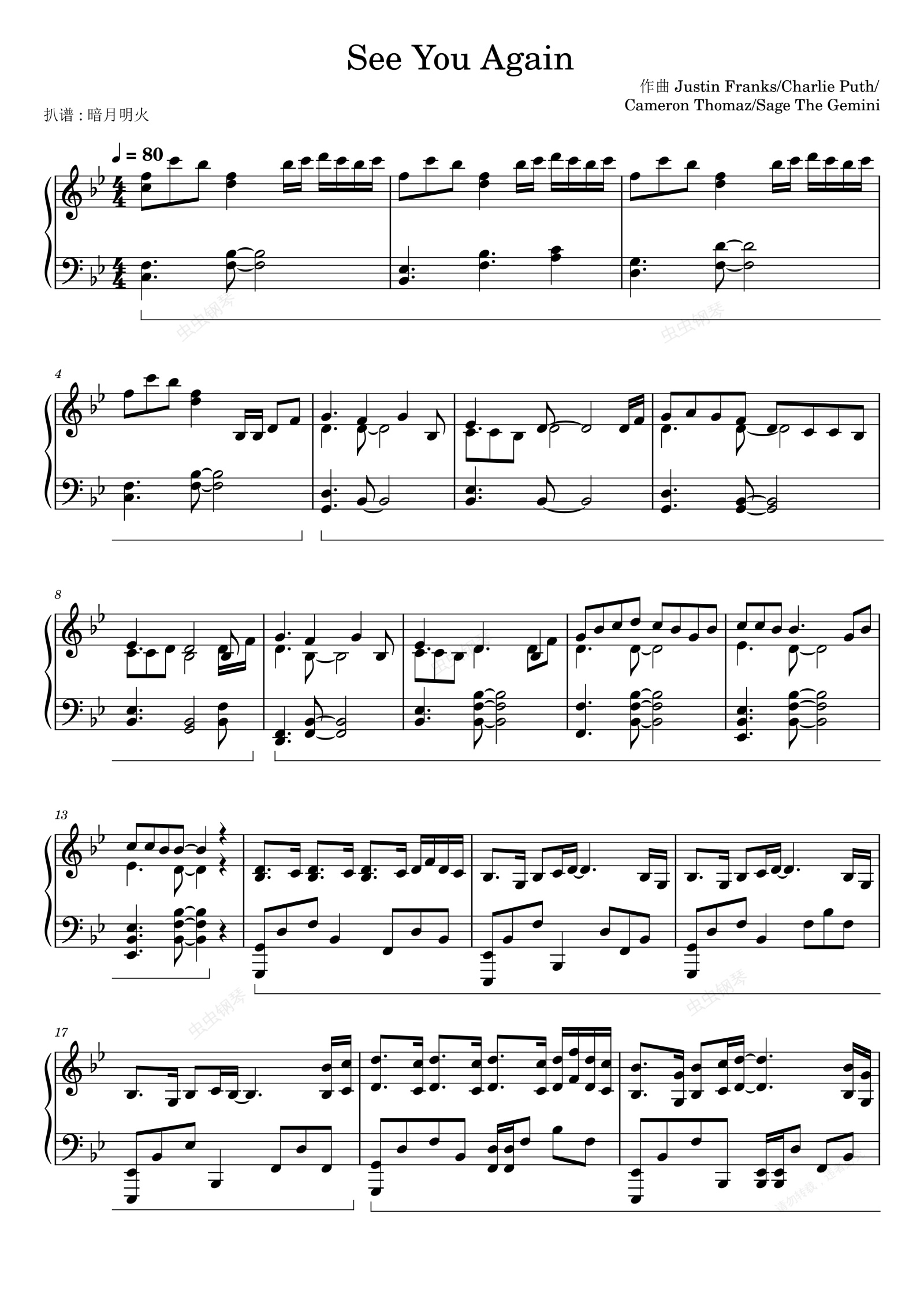 钢琴谱:See You Again 速度与激情7主题曲钢琴完美还原