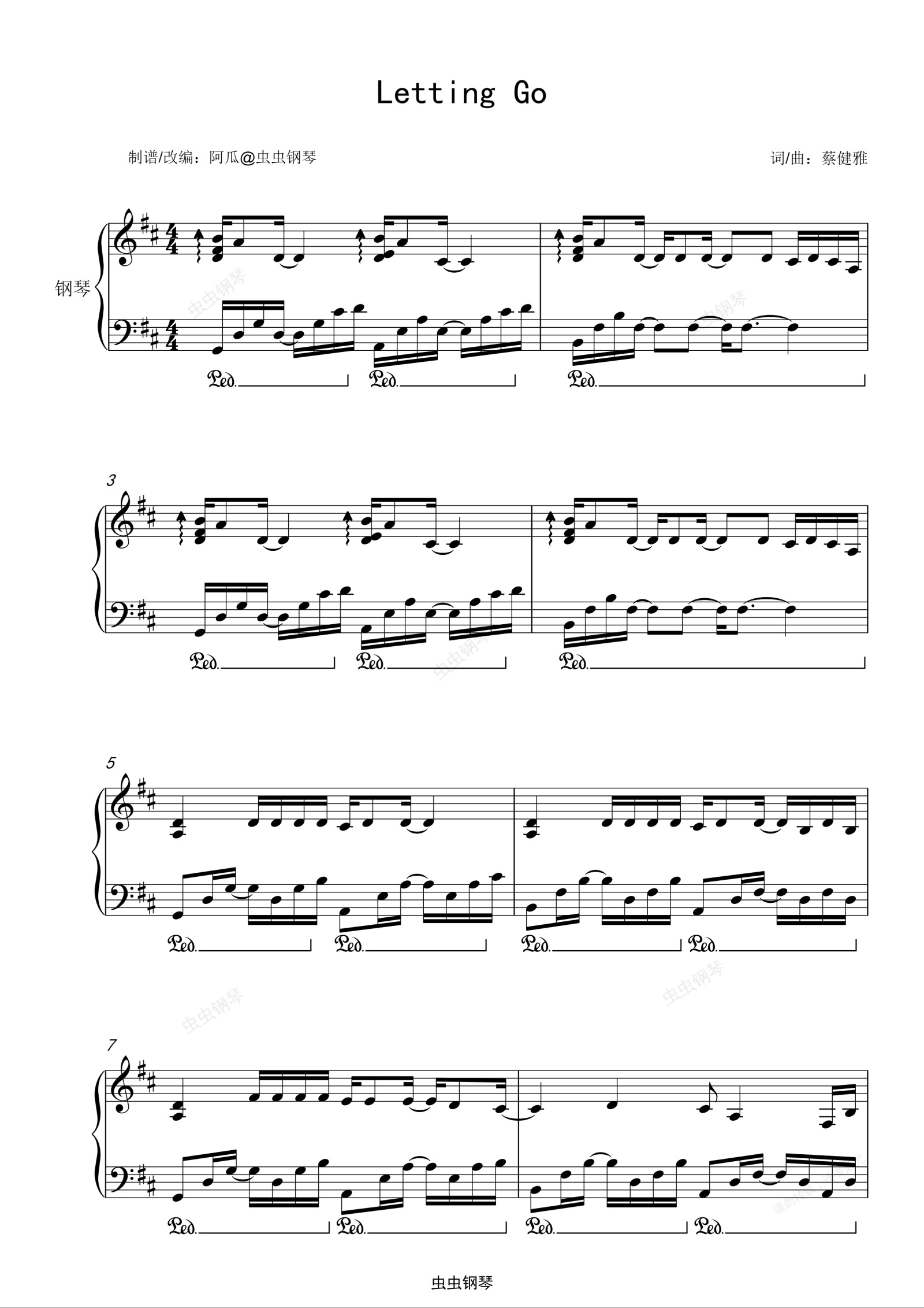 钢琴谱:Letting Go-蔡健雅【高还原】