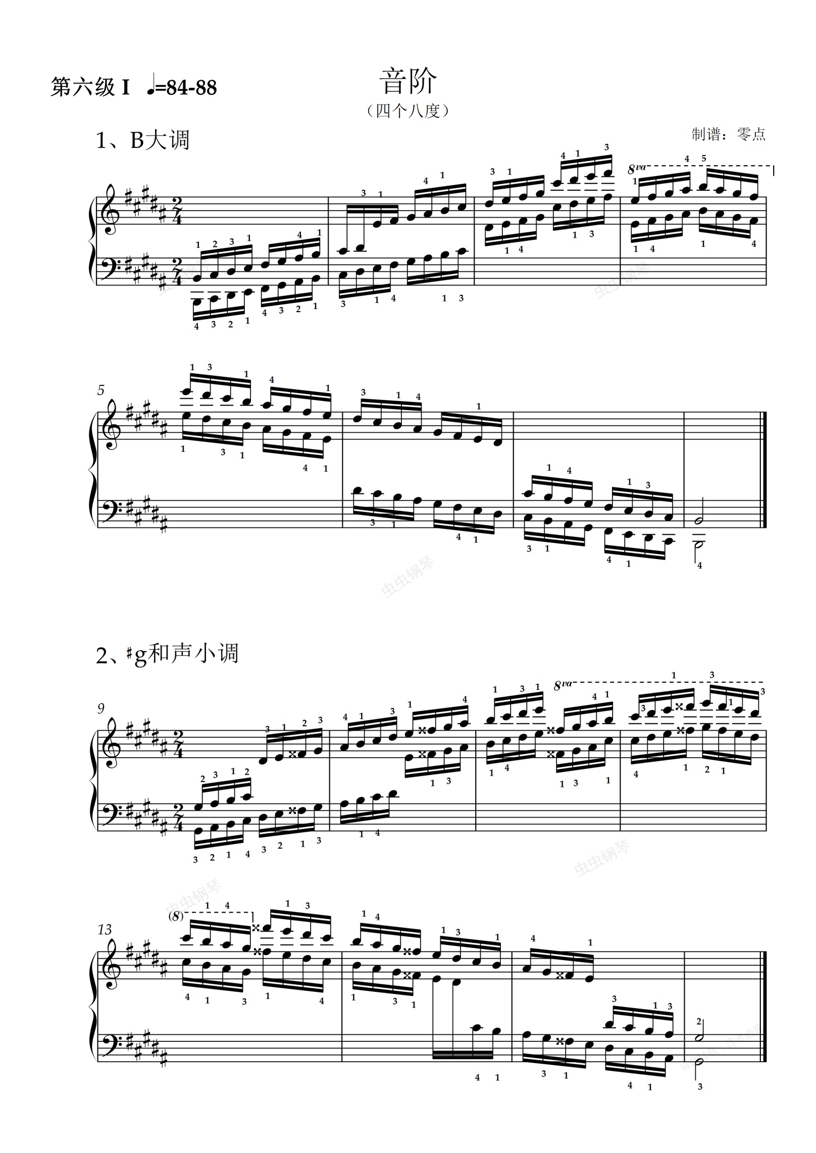 钢琴谱:第六级 音阶