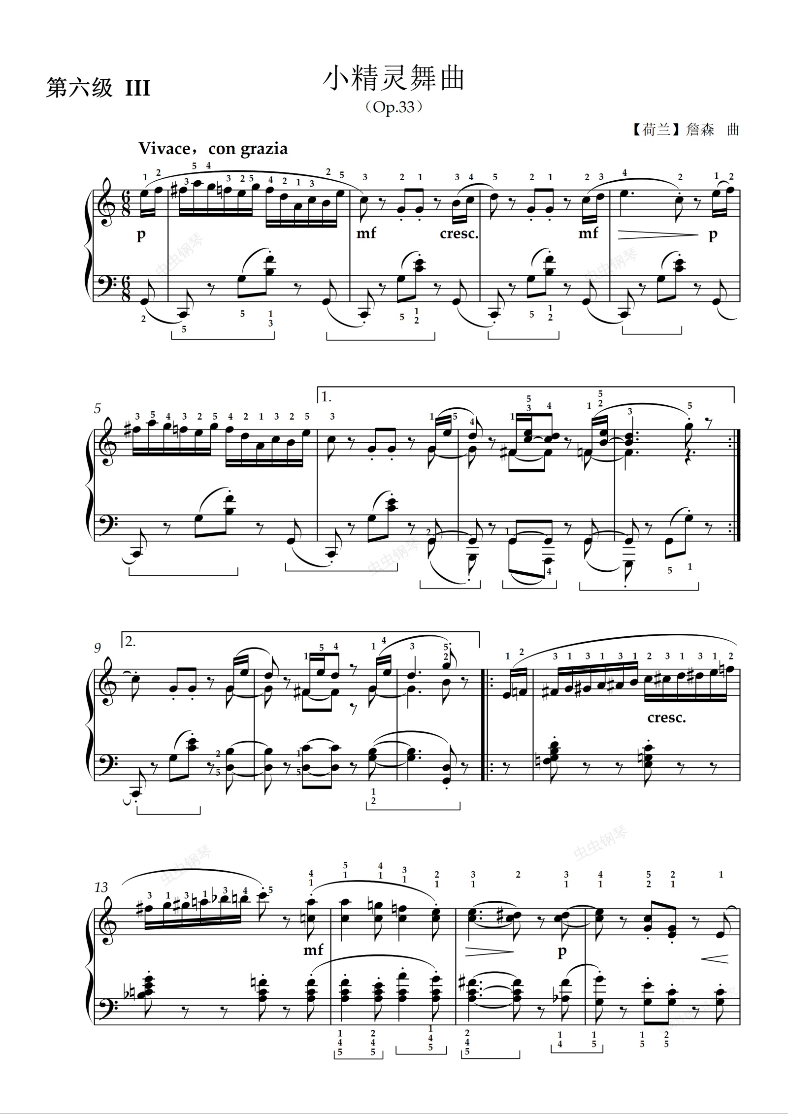 钢琴谱:第六级 小精灵舞曲