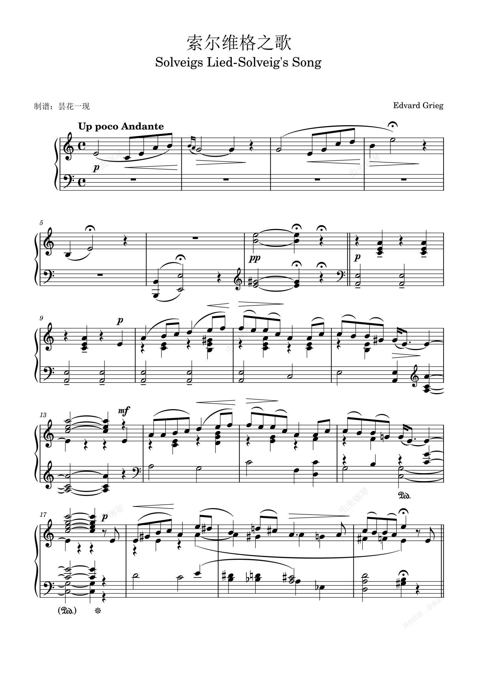钢琴谱:索尔维格之歌(Solveig's Song)格里格