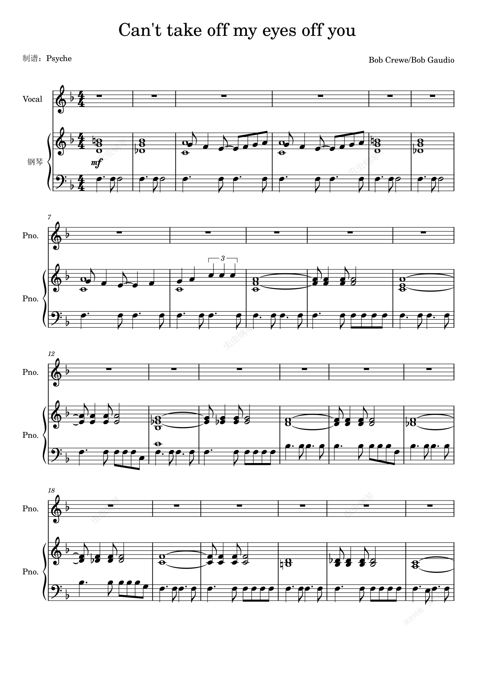 钢琴谱:Can't Take My Eyes Off You - 为你目不转睛