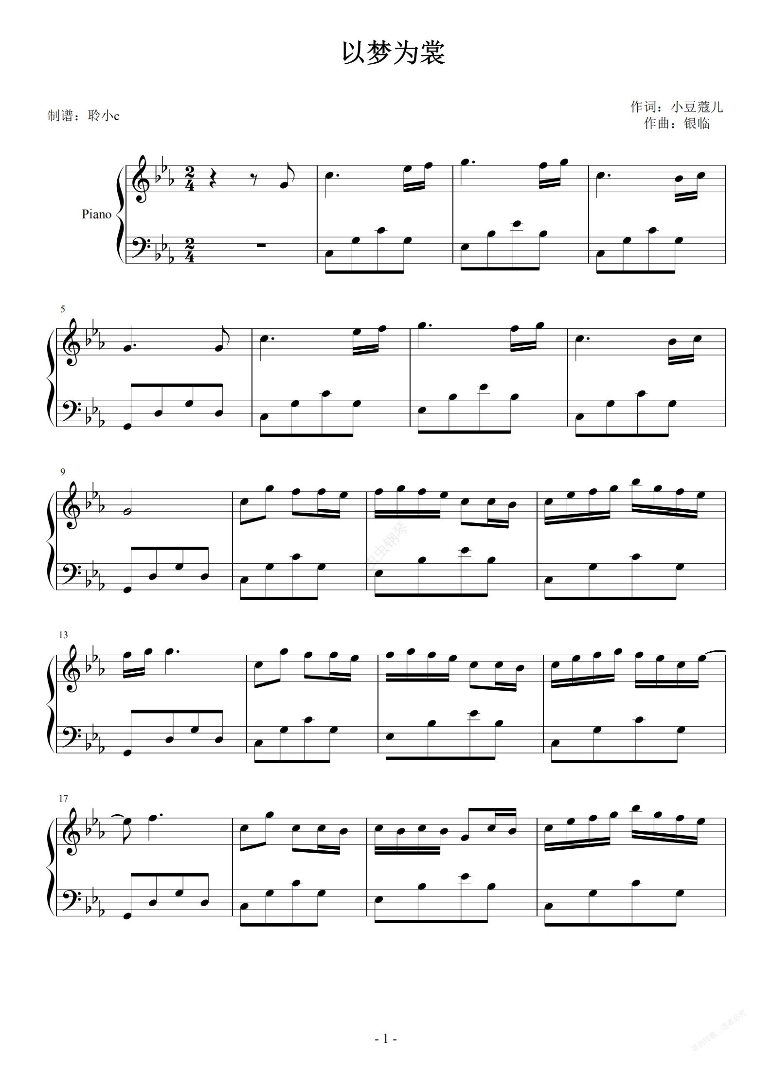 钢琴谱:以梦为裳 降E调